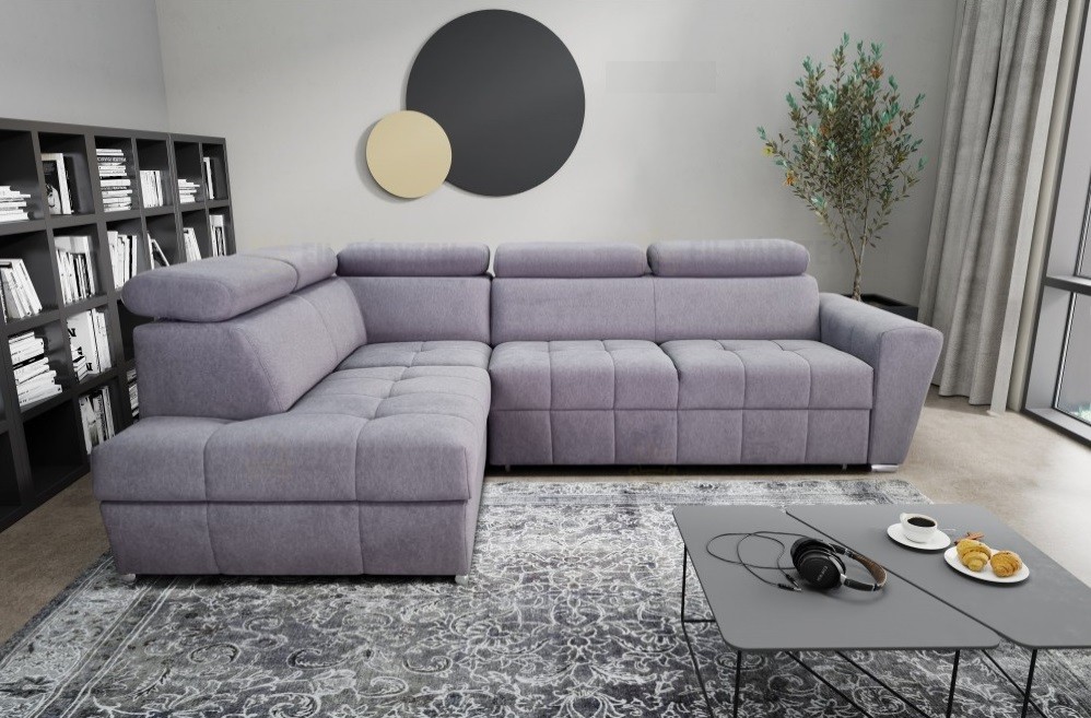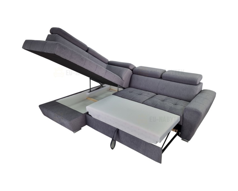 Moderní sedací souprava Klaudie je ideální pro ty, kteří požadují komfort a vysoké pohodlí. Styl jejího provedení je velice nadčasový a svými liniemi zapadne do každého interiéru. Nadchne Vás především svým kvalitním výrazným prošitím a zajímavým tvarem područky. Na sedáky jsou použity kvalitní pružiny typu Faliste spolu s vysokoelastickou PUR pěnou. Velkou výhodou jsou polohovatelné záhlavníky, díky kterým si dopřejete pohodlný odpočinek. Samozřejmostí je rozklad, díky kterému získáte plochu pro příležitostné spaní o rozměru 196x125cm. Praktický úložný prostor se nachází v bočním otomanu. Čalouněná je kvalitní látkou Castel 82. V nabídce i v jiných barevných provedeních.