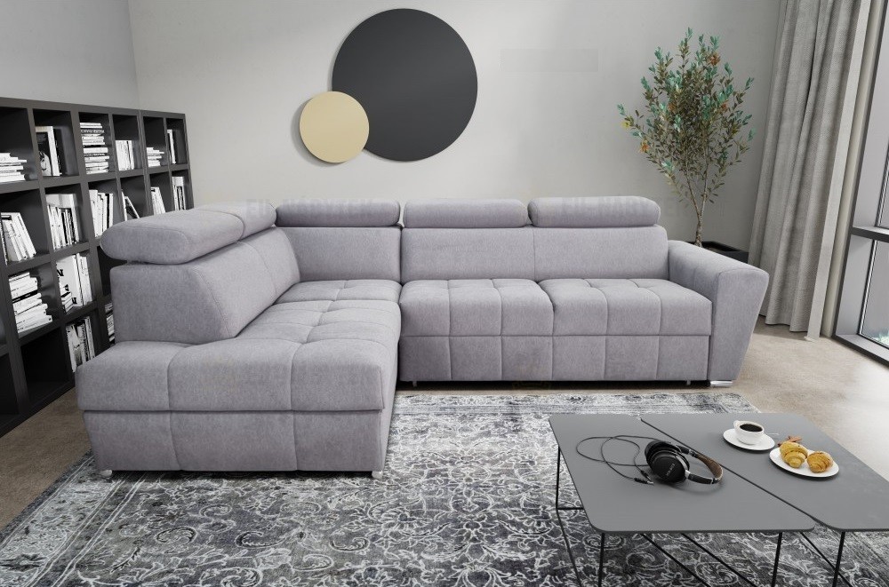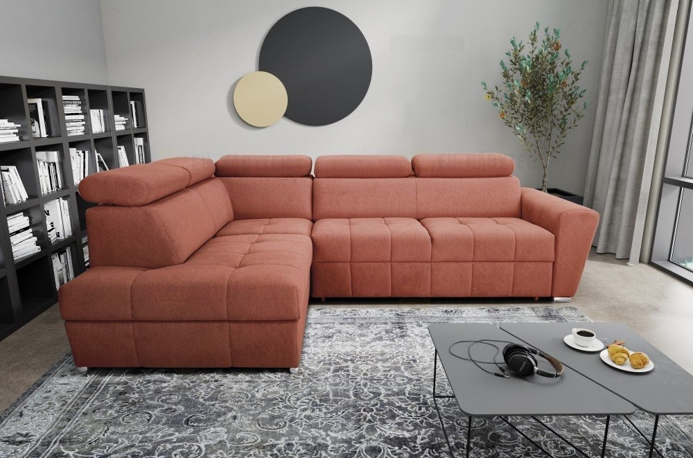 Moderní sedací souprava Klaudie je ideální pro ty, kteří požadují komfort a vysoké pohodlí. Styl jejího provedení je velice nadčasový a svými liniemi zapadne do každého interiéru. Nadchne Vás především svým kvalitním výrazným prošitím a zajímavým tvarem područky. Na sedáky jsou použity kvalitní pružiny typu Faliste spolu s vysokoelastickou PUR pěnou. Velkou výhodou jsou polohovatelné záhlavníky, díky kterým si dopřejete pohodlný odpočinek. Samozřejmostí je rozklad, díky kterému získáte plochu pro příležitostné spaní o rozměru 196x125cm. Praktický úložný prostor se nachází v bočním otomanu. Čalouněná je kvalitní látkou Castel 93. V nabídce i v jiných barevných provedeních.