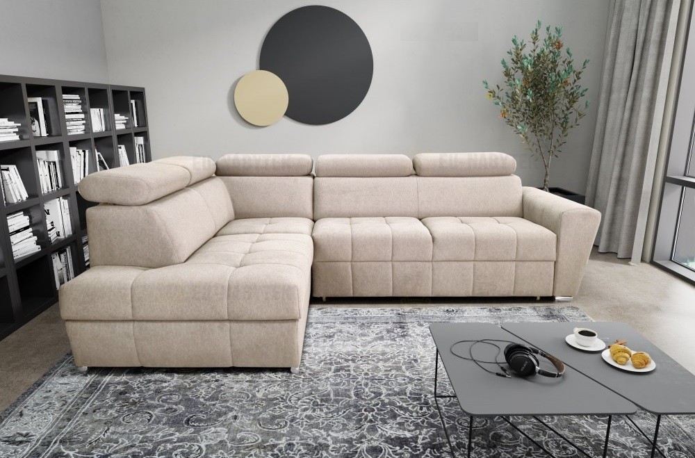 Moderní sedací souprava Klaudie je ideální pro ty, kteří požadují komfort a vysoké pohodlí. Styl jejího provedení je velice nadčasový a svými liniemi zapadne do každého interiéru. Nadchne Vás především svým kvalitním výrazným prošitím a zajímavým tvarem područky. Na sedáky jsou použity kvalitní pružiny typu Faliste spolu s vysokoelastickou PUR pěnou. Velkou výhodou jsou polohovatelné záhlavníky, díky kterým si dopřejete pohodlný odpočinek. Samozřejmostí je rozklad, díky kterému získáte plochu pro příležitostné spaní o rozměru 196x125cm. Praktický úložný prostor se nachází v bočním otomanu. Čalouněná je kvalitní látkou Castel 55. V nabídce i v jiných barevných provedeních.