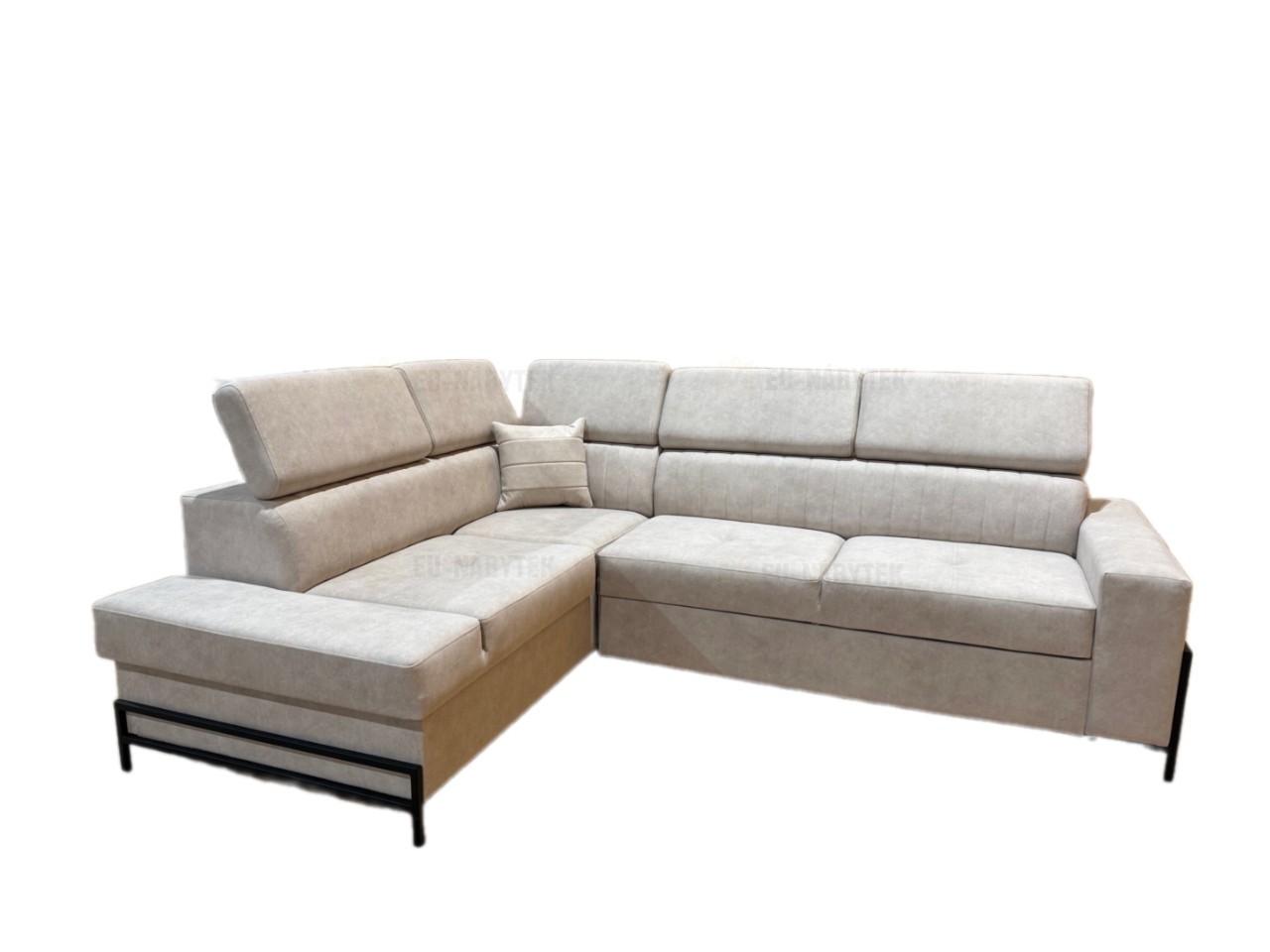 Rohová celočalouněná sedačka Oman je extravagantní kousek, který bude apelovat na všechny, i ty nejnáročnější zákazníky. Perfektně se hodí do každého interiéru obývacího pokoje. Velkou výhodou jsou praktické polohovatelné záhlavníky, díky kterým si dopřejete ten nejpohodlnější odpočinek. Předností je velmi kvalitní prošití a zajímavé provedení kovových noh, které sedačce dodávají ten správný design. Oman je rohová sedačka s praktickým úložným prostorem v bočním otomanu a také spací plochou. Díky automatickému rozkladu získáte během pár sekund plochu o rozměru 121x200cm. Pohodlné sezení zaručují pružiny Faliste spolu s kvalitní PUR pěnou. Celkové rozměry sedačky jsou 270x212x86/102cm. Čalouněná je kvalitní látkou Cloud 72.