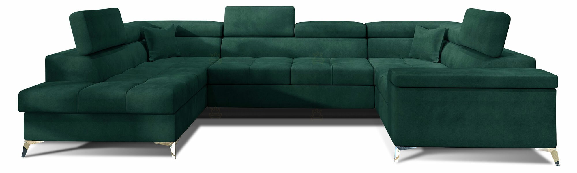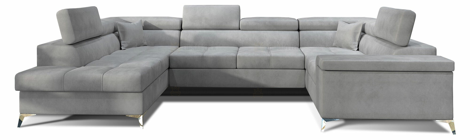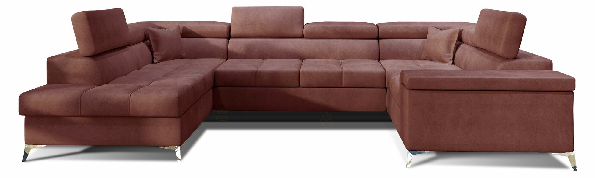 Moderní prostorná sedací souprava DENIRA je ideální pro ty, kteří požadují komfort a vysoké pohodlí. Styl jejího provedení je velice nadčasový a svými liniemi zapadne do každého interiéru. Na sedáky jsou použity pružiny typu Faliste a kvalitní vysokoelastická pěna T30. Velkou výhodou jsou polohovatelné záhlavníky, díky kterým si užijete dokonalý odpočinek. Díky čalouněným zádům lze sedací soupravu umístit i volně do prostoru. Samozřejmostí je úložný prostor, který se nachází v bočním otomanu, a rozklad pro příležitostné přespání o rozměru 125x235cm. Designovým prvkem jsou chromované designové nožky. Čalounění je kvalitní látka Monolith 63. Lze si vybrat z velké škály barevných provedení, které naleznete na našich stránkách.