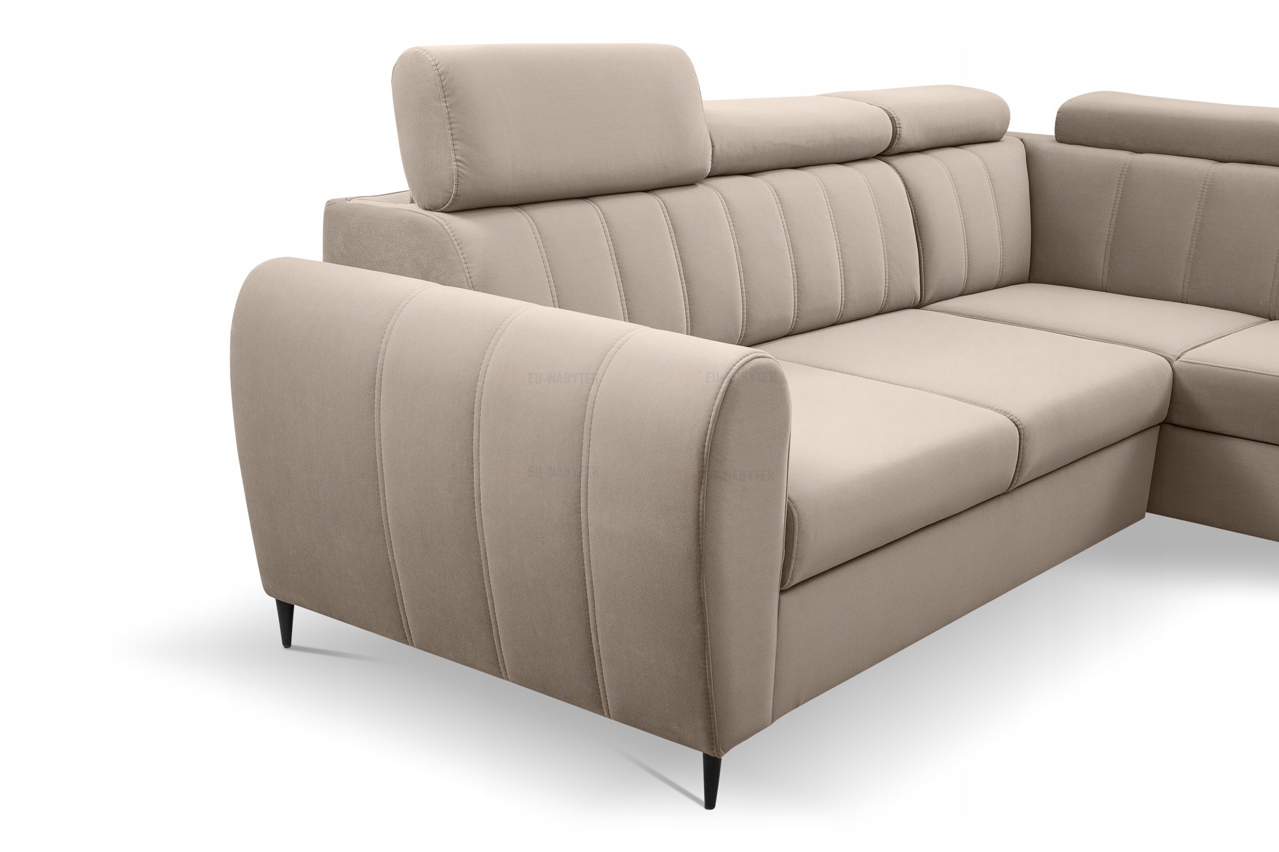 Moderní sedací souprava Forewer je ideální pro ty, kteří požadují komfort a vysoké pohodlí. Styl jejího provedení je velice nadčasový a svými liniemi zapadne do každého interiéru. Nadchne především svým zajímavým kvalitním prošíváním a designovými černými nožkami o výšce 11cm. Na sedáky jsou použity kvalitní pružiny typu Faliste spolu s vysokoelastickou PUR pěnou T30. Velkou výhodou jsou polohovatelné záhlavníky, díky kterým si dopřejete ten nejpohodlnější odpočinek. Samozřejmostí je rozklad, díky kterému získáte plochu pro příležitostné spaní o rozměru 215x128cm. Praktický úložný prostor se nachází v bočním otomanu. Celočalouněná - vhodná do prostoru. Čalouněná je kvalitní látkou Paros 03. V nabídce i v jiných barevných provedeních.