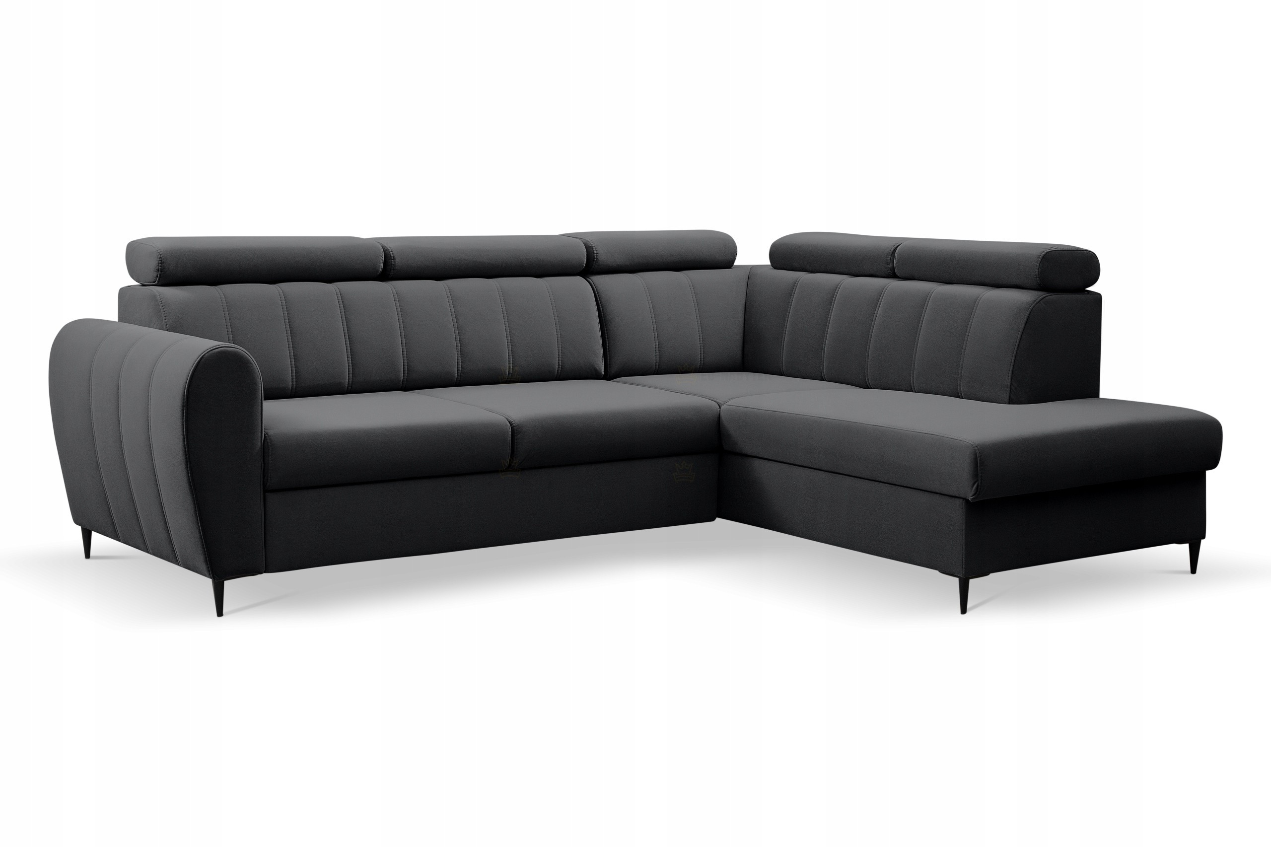 Moderní sedací souprava Forewer je ideální pro ty, kteří požadují komfort a vysoké pohodlí. Styl jejího provedení je velice nadčasový a svými liniemi zapadne do každého interiéru. Nadchne především svým zajímavým kvalitním prošíváním a designovými černými nožkami o výšce 11cm. Na sedáky jsou použity kvalitní pružiny typu Faliste spolu s vysokoelastickou PUR pěnou T30. Velkou výhodou jsou polohovatelné záhlavníky, díky kterým si dopřejete ten nejpohodlnější odpočinek. Samozřejmostí je rozklad, díky kterému získáte plochu pro příležitostné spaní o rozměru 215x128cm. Praktický úložný prostor se nachází v bočním otomanu. Celočalouněná - vhodná do prostoru. Čalouněná je kvalitní látkou Trinity 33. V nabídce i v jiných barevných provedeních.