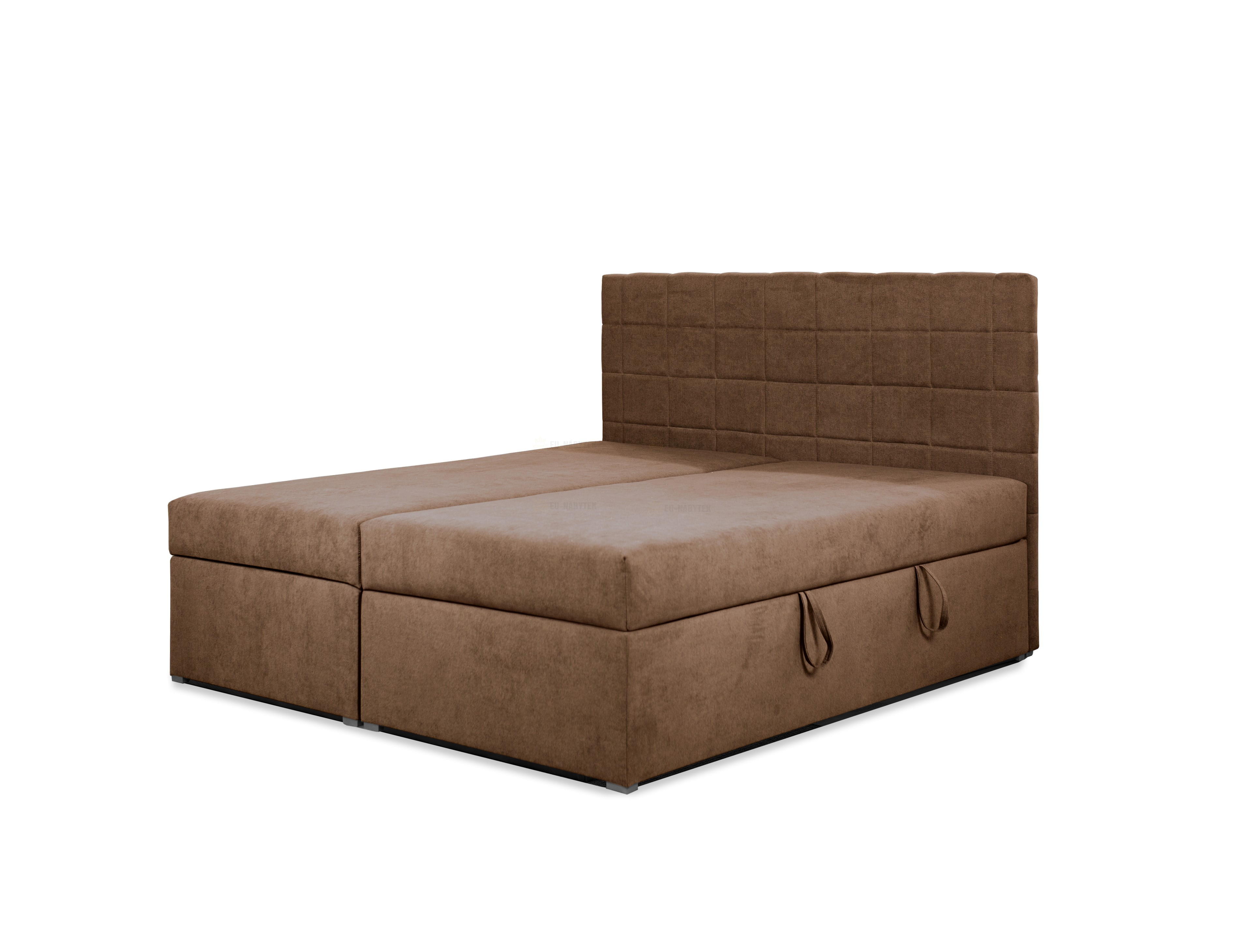Kontinentální postel BOXSPRING vyniká svým jedinečným vzhledem. Boxspring je postelový systém, který můžete znát ze zahraničí či luxusních hotelů. Tato postel je nejen specifická svým vysokým násedem, ale hlavně díky svému složení odlišná od klasických postelí. Základním prvkem této postele je vysoká 20cm matrace na desce, která slouží jako prevence ortopedických vad páteře. Postel obsahuje dva praktické úložné prostory (viz fotogalerie). Vybrat si můžete s rozměrů matrací 160x200cm a 180x200cm. Celkové rozměry postel jsou 164/184x120x209cm. Zaujme především svým kvalitním prošitím čela. Dodávano v demontu. Čalouněná je kvalitní látkou Asti 27. v nabídce i v jiném barevném provedení.