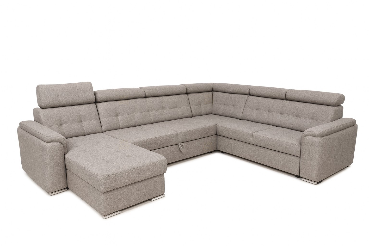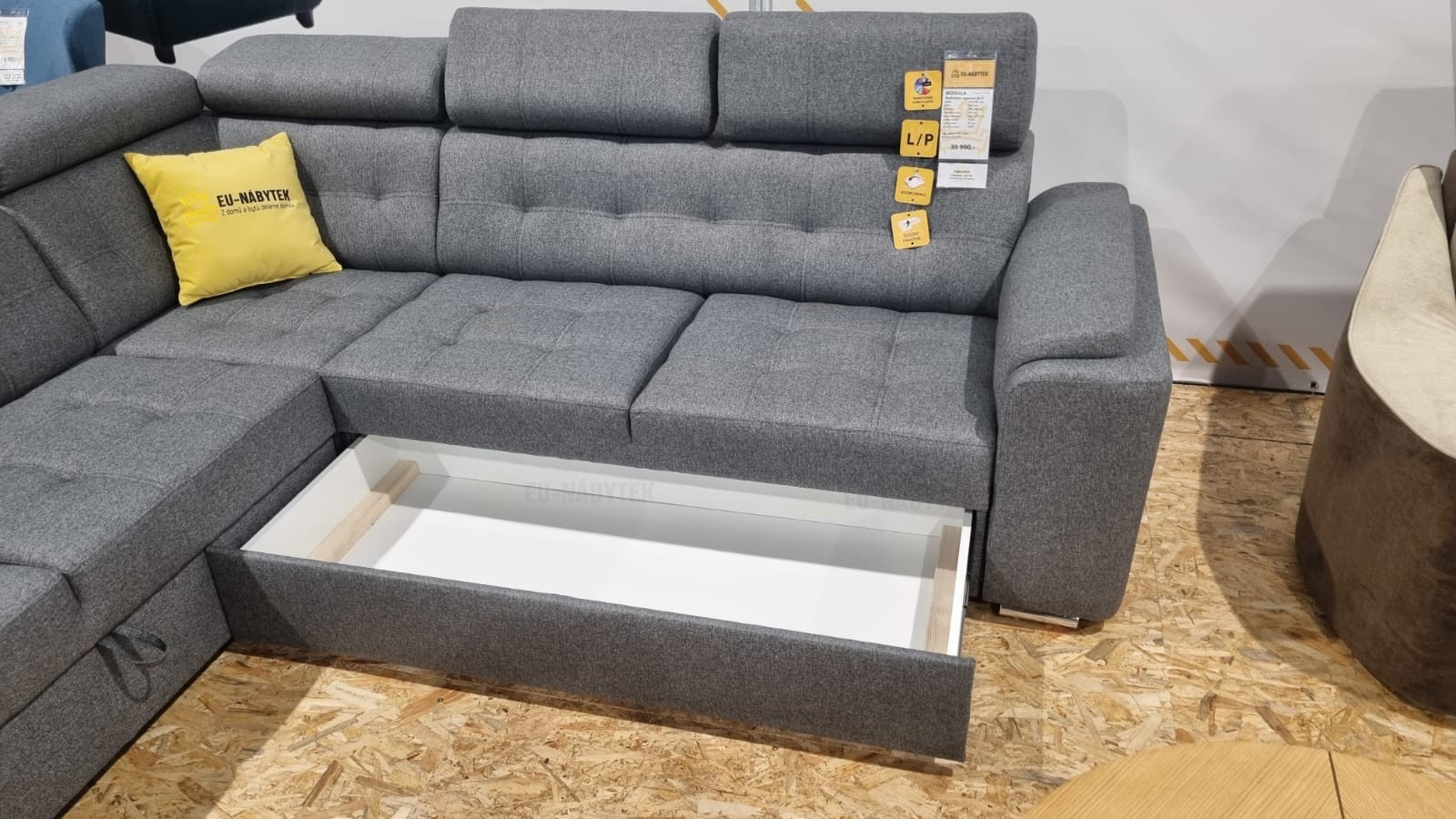 Moderní sedací souprava Modula je ideální pro ty, kteří požadují komfort a vysoké pohodlí. Díky svým rozměrům vhodná do prostorných obývacích pokojů. Stav jejího provedení je velice nadčasový a svými liniemi zapadne do každého moderního interiéru. Kvalitní propracované prošití včetně záhlavníků. Vyrobit však lze i v jednobarevném provedení bez proužků. Vzhledem k očalouněným zádům je vhodná do prostoru. Na sedáky jsou použity pružiny typu Faliste a vysokoelastická PUR pěna. Velkou výhodou jsou polohovatelné záhlavníky se sedmi stupňovým nastavením opěrky hlavy, díky kterým si dopřejete pohodlný odpočinek. Samozřejmostí je úložný prostor v bočním otomanu a možnost rozkladu pro příležitostné spaní. Čalouněná je kvalitní látkou Solid 99. V nabídce ji naleznete i v jiných rozměrech. Vyberte si tak tu, která Vám bude nejvíce vyhovovat. Na hlavním obrázku je pravý roh!