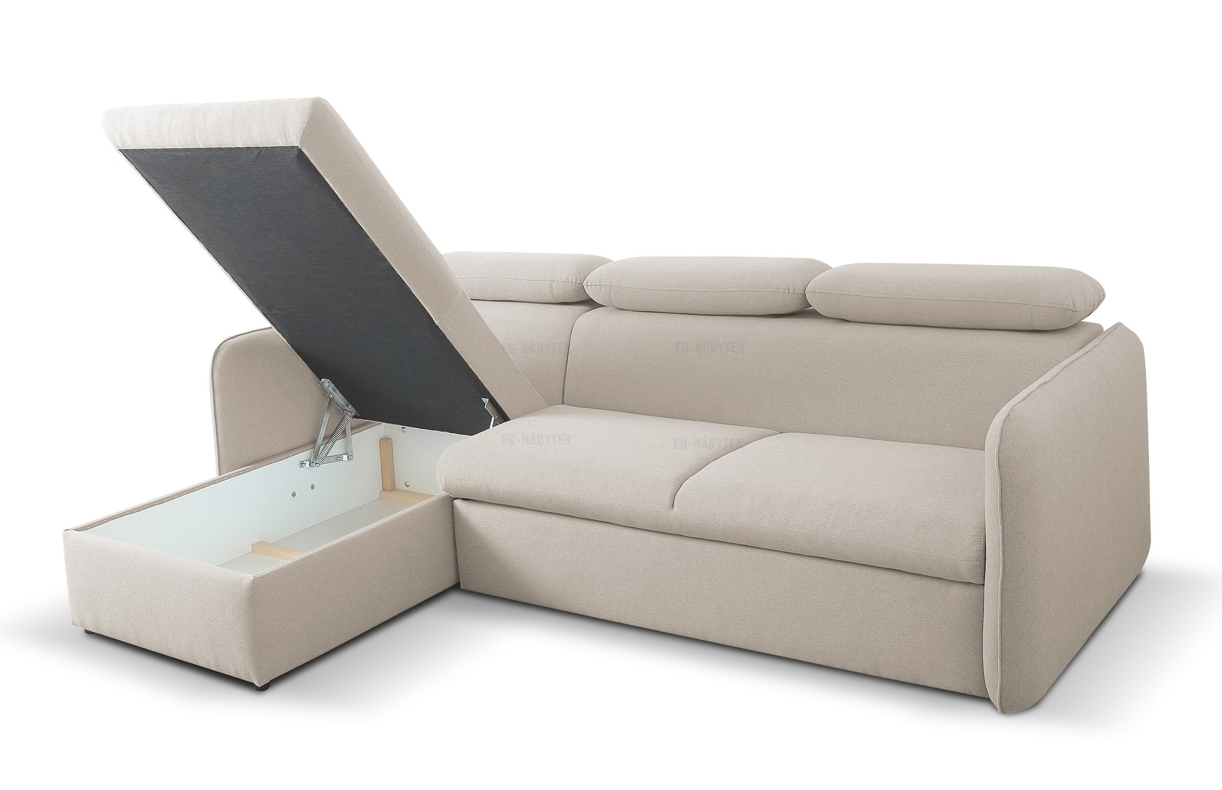 Moderní sedací souprava Emila je ideální pro ty, kteří požadují komfort a vysoké pohodlí. Stav jejího provedení je velice nadčasový a svými liniemi zapadne do každého interiéru. Zajímavé designové prošití dodává sedačce ten správný vzhled. Na sedáky jsou použity pružiny typu Faliste a vysokoelastická PUR pěna. Velkou výhodou jsou polohovatelné záhlavníky, díky kterým si dopřejete pohodlný odpočinek. Celkové rozměry sedačky jsou 235x179x78/92cm. Čalouněná je kvalitní látkou Castel 03.