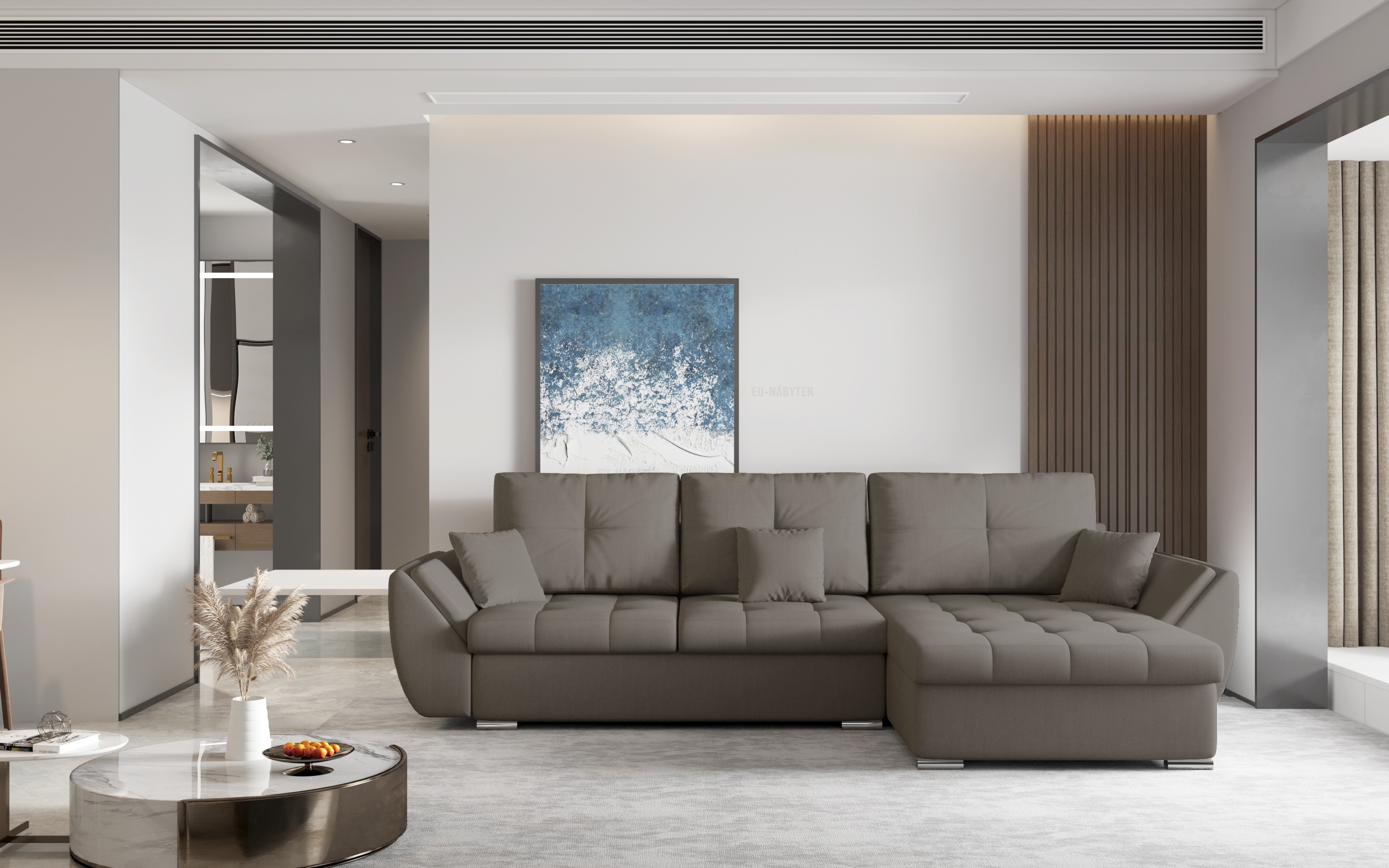 Sedací souprava Manila je ideálním kouskem pro ty, kteří ocení komfort a pohodlí. Tkanina vysoké kvality, masivní pevná kostra, s kvalitní PUR pěnou T30 v kombinaci pružin zaručují komfortní posezení. Plocha po rozložení je o rozměru 145x210 cm. Sedací souprava má také praktický úložný prostor, který se nachází v bočním otomanu a v hlavní části po rozložení. Nožky jsou z kovu, délka je 10cm. Nadchne především svým zajímavým provedením područek, které dodávají sedačce nadčasový design. Čalouněná je kvalitní látkou - Cruz Mil 19039. V nabídce ji naleznete i v jiném barevném provedení.