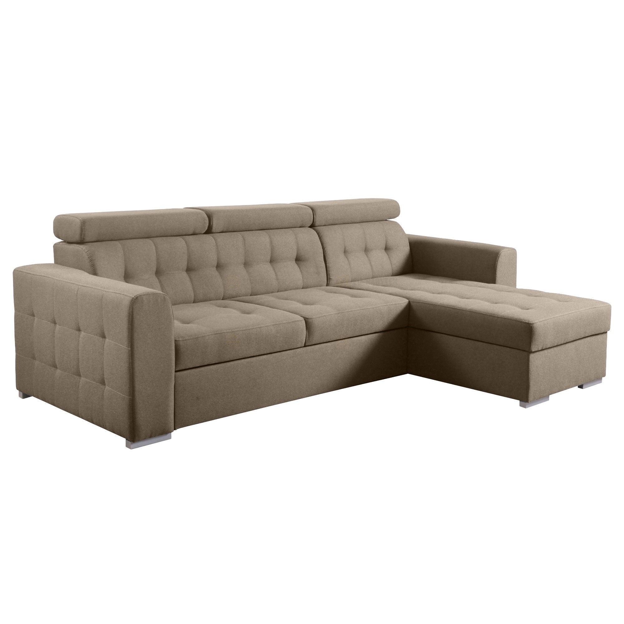 Moderní sedací souprava Target je ideální pro ty, kteří požadují komfort a vysoké pohodlí. Styl jejího provedení je velice nadčasový a svými liniemi zapadne do každého interiéru. Na sedáky jsou použity pružiny typu Faliste spolu s vysokoelastickou PUR pěnou T30. Velkou výhodou jsou tři polohovatelné záhlavníky. Pozornost upoutá kvalitní prošité sezení včetně opěrné části a područek. Samozřejmostí je úložný prostor v bočním otomanu a automatický rozklad, díky kterému získáte plochu na spaní o rozměru 215x125cm. Celkové roměry sedačky jsou 265x175x98/101cm. Díky čalouněným zádům lze sedací soupravu umístit i volně do prostoru. Čalouněná je kvalitní látkou Kronos 19. V nabídce i jiné barevné varianty.