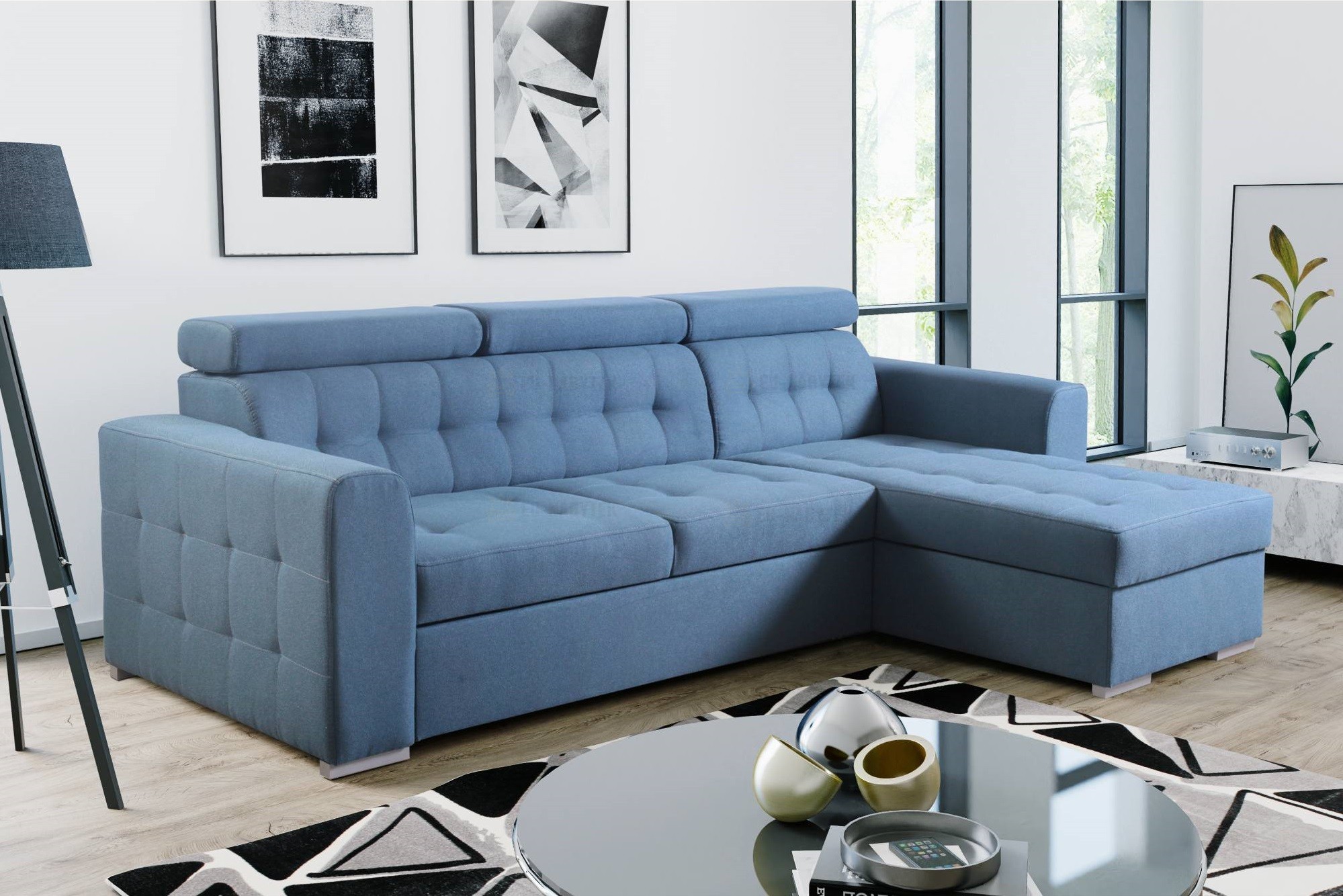 Moderní sedací souprava Target je ideální pro ty, kteří požadují komfort a vysoké pohodlí. Styl jejího provedení je velice nadčasový a svými liniemi zapadne do každého interiéru. Na sedáky jsou použity pružiny typu Faliste spolu s vysokoelastickou PUR pěnou T30. Velkou výhodou jsou tři polohovatelné záhlavníky. Pozornost upoutá kvalitní prošité sezení včetně opěrné části a područek. Samozřejmostí je úložný prostor v bočním otomanu a automatický rozklad, díky kterému získáte plochu na spaní o rozměru 215x125cm. Celkové roměry sedačky jsou 265x175x98/101cm. Díky čalouněným zádům lze sedací soupravu umístit i volně do prostoru. Čalouněná je kvalitní látkou Kronos 05. V nabídce i jiné barevné varianty.