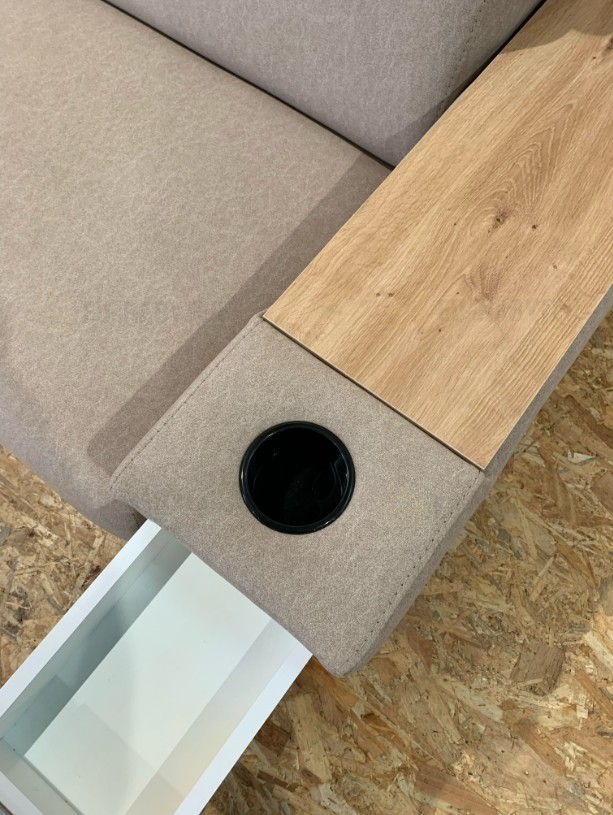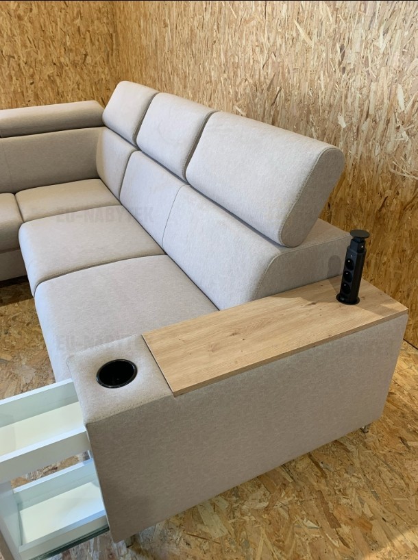 Luxusní prostorná sedací souprava Sagel vhodná pro ty nejnáročnější zákazníky. Sedačka nabízí vysoký komfort a pohodlí. Disponuje praktickým barem (28x98x58cm) s úložným prostorem, sadou vysunujících 3-zásuvek a držákem na pití. Vrchní deska na barové části je vyrobena z kvalitní LTD. Vzhledem k očalouněným zádům je vhodná do prostoru. Na sedáky jsou použity pružiny typu Faliste a vysokoelastická PUR pěna. Velkou výhodou jsou polohovatelné záhlavníky, díky kterým si dopřejete pohodlný odpočinek. Samozřejmostí je automatický úložný prostor v bočním otomanu a rozklad pro příležitostné spaní o rozměru 125x200cm . Čalouněná je kvalitní látkou Castel 15. Designové kovové nožky.