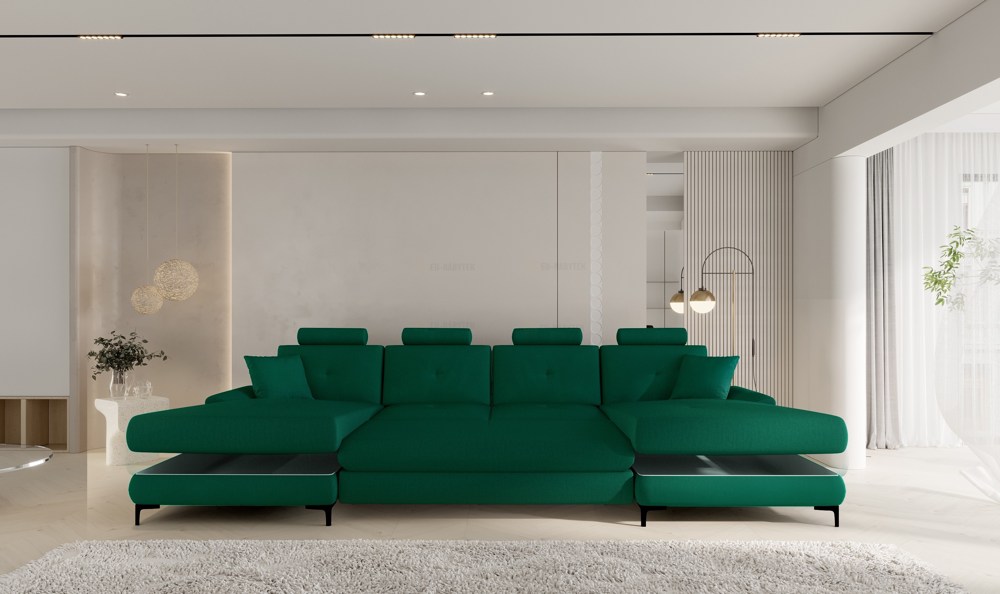 Sedací souprava Megan je ideální pro ty, kteří ocení komfort a pohodlí. Prostorná sedačka, která se hodí především do moderních obývacích pokojů. Tkanina vysoké kvality, masivní pevná kostra, s kvalitní PUR pěnou T30 zaručují komfortní posezení. Samozřejmostí je možnost rozkladu pro příležitostné přespání a praktický úložný prostor, který se nachází v bočních otomanech. Plocha po rozložení je 292x125cm. Designovým prvkem jsou černé kovové nožky o výšce 10cm. Díky vysouvacím záhlavníkům si dopřejete ještě lepší odpočinek. Barevné provedení - Monolith 37. Tuto sedačku nabízíme v několika barevných provedeních, které naleznete na stránce.