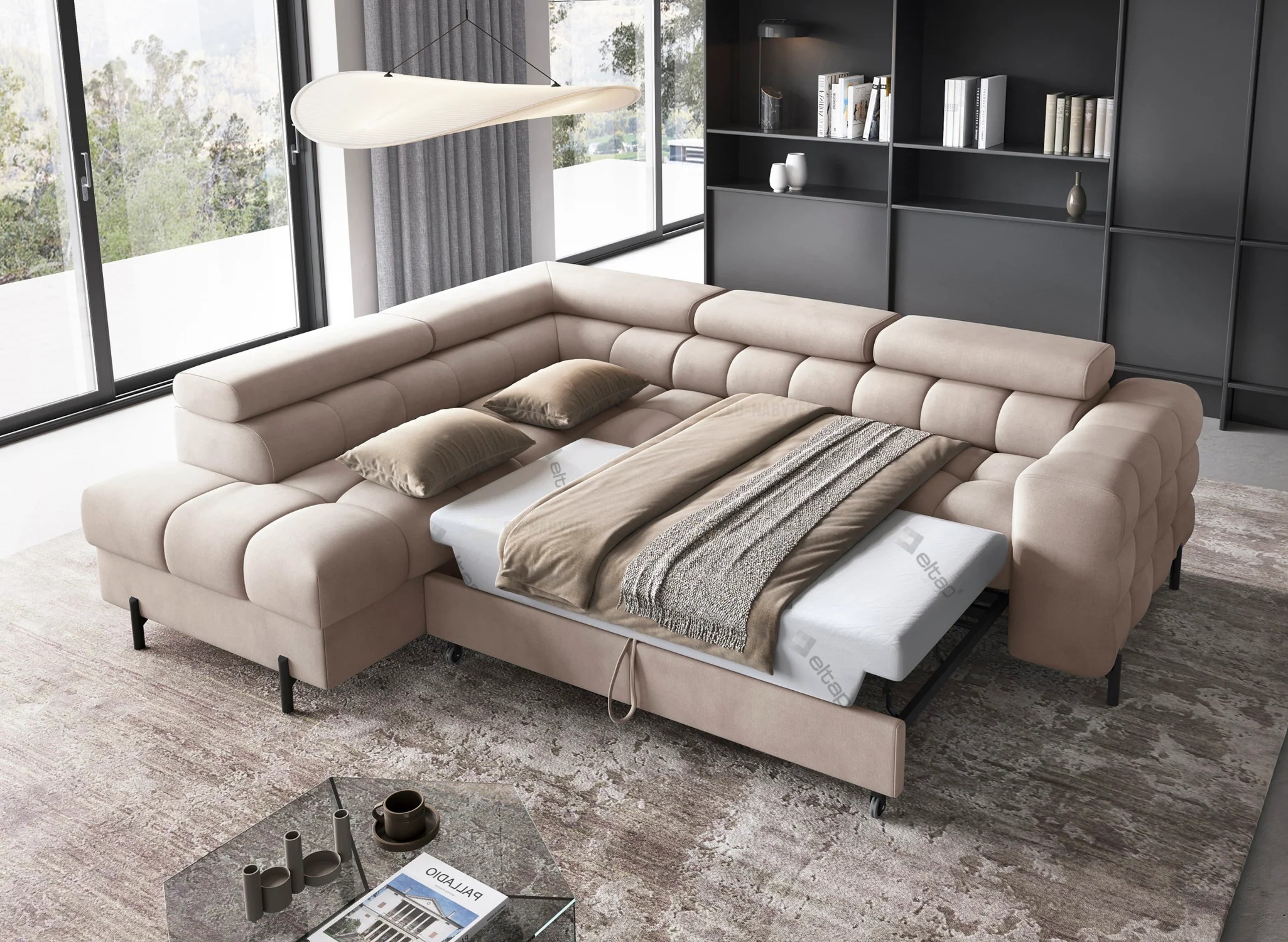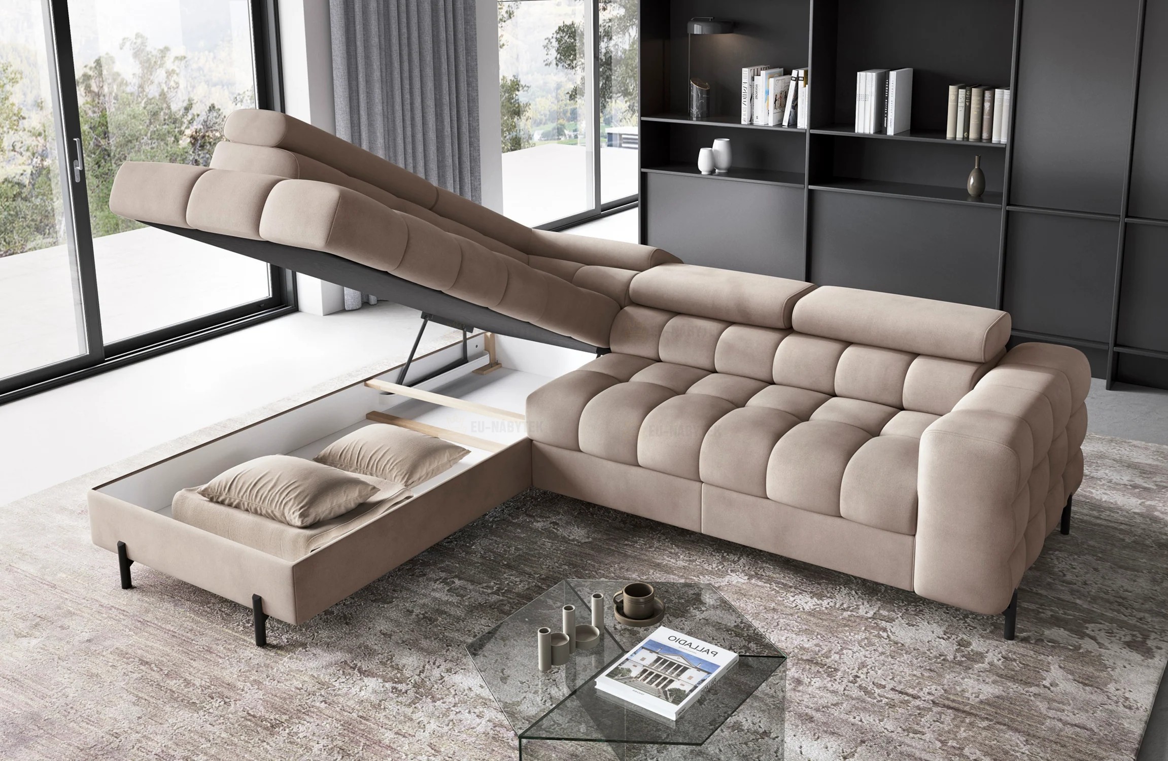 Luxusní sedačka FERITA je moderní nadčasový kousek, který nadchne i ty nejnáročnější zákazníky. Díky svým jednoduchým liniím a elegantní povrchové úpravě dokonale zapadne do estetiky moderních interiérů. Působili váš domov industriálním dojmem, Ferita bude v tomto typu dekoru vypadat skvěle. Její masivní konstrukce a kovové dokončovací prvky dokonale ladí s materiály typickými pro lofty, jako je beton nebo ocel. V domácnostech zařízených v rustikálním stylu, kde se cení přírodní materiály a útulná domácí atmosféra, dodá dekoru nádech modernosti, který bude dokonale kontrastovat s tradičními rustikálními akcenty. Sedák je vyplněný pružinou Faliste typu B, pěnou T3030 a profilovanou pěnou HR3030. Společně vám tyto komponenty poskytnou ten nejvyšší komfort a poskytnou mu správnou podporu. Tato směs materiálů je navíc odolná proti nevzhlednému mačkání. Strukturu doplňují opěrky hlavy a zad vyplněné měkkou polyuretanovou pěnou T2130. Čalouněná je kvalitní látkou Paros 02.