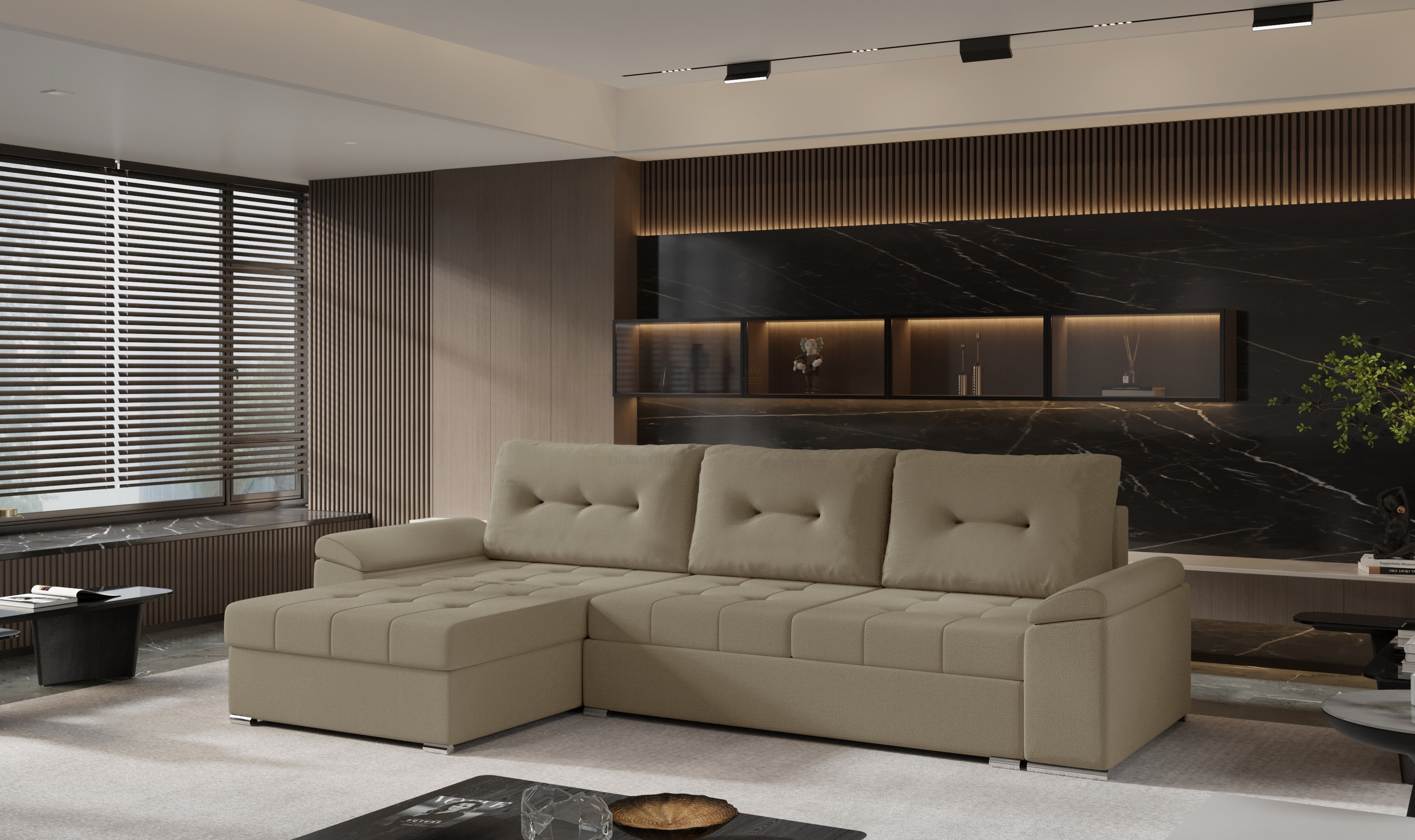 Sedací souprava Maja je ideální pro ty, kteří ocení komfort a pohodlí. Tkanina vysoké kvality, masivní pevná kostra, s kvalitní PUR pěnou T30 zaručují komfortní posezení. Plocha po rozložení 124x210 cm. Sedací souprava má také praktický úložný prostor. Nožky jsou z kovu, délka je 10cm. Barevné provedení - Orinoco 22. V nabídce i v jiném barevném provedení.
