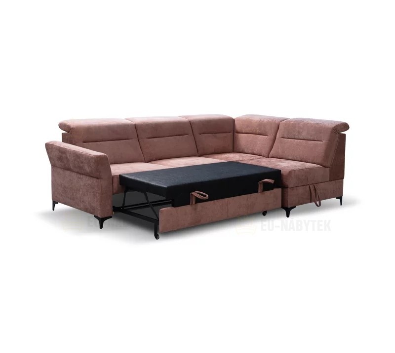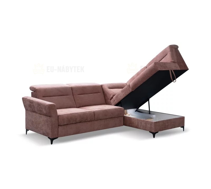 Rohová celočalouněná sedačka Deniro je extravagantní kousek, který bude apelovat na všechny, i ty nejnáročnější zákazníky. Perfektně se hodí do každého interiéru obývacího pokoje. Velkou výhodou jsou praktické polohovatelné záhlavníky, díky kterým si dopřejete ten nejpohodlnější odpočinek. Předností jsou moderní kovové černé nožky, které sedačce dodávají ten správný design. Deniro je rohová sedačka s praktickým úložným prostorem v bočním otomanu a také spací plochou. Díky automatickému rozkladu získáte během pár sekund plochu o rozměru 123x202cm. Pohodlné sezení zaručují pružiny Faliste spolu s kvalitní HR pěnou. Celkové rozměry sedačky jsou 272x177x90/113cm. Čalouněná je kvalitní látkou Uttario Velvet 2971. K sedačce lze dokoupit i praktický taburet.