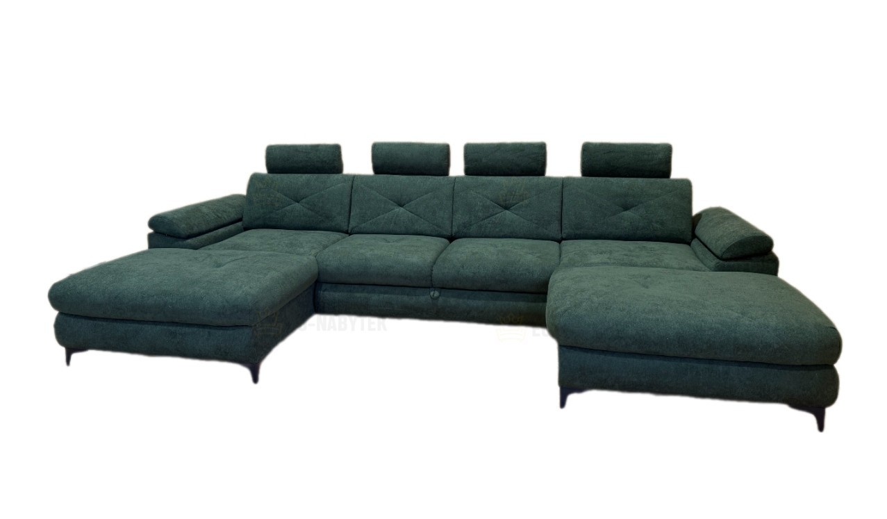 Sedací souprava Merry je ideální pro ty, kteří ocení komfort a pohodlí. Prostorná sedačka, která se hodí především do moderních obývacích pokojů. Tkanina vysoké kvality, masivní pevná kostra, s kvalitní PUR pěnou T30 v kombinaci pružin Faliste zaručují komfortní posezení. Samozřejmostí je možnost rozkladu pro příležitostné přespání a praktický úložný prostor, který se nachází v bočních otomanech. Plocha po rozložení je 292x125cm. Designovým prvkem jsou černé kovové nožky o výšce 10cm. Díky vysouvacím záhlavníkům si dopřejete ještě lepší odpočinek. Čalouněná je kvalitní látkou Freya 210.10.