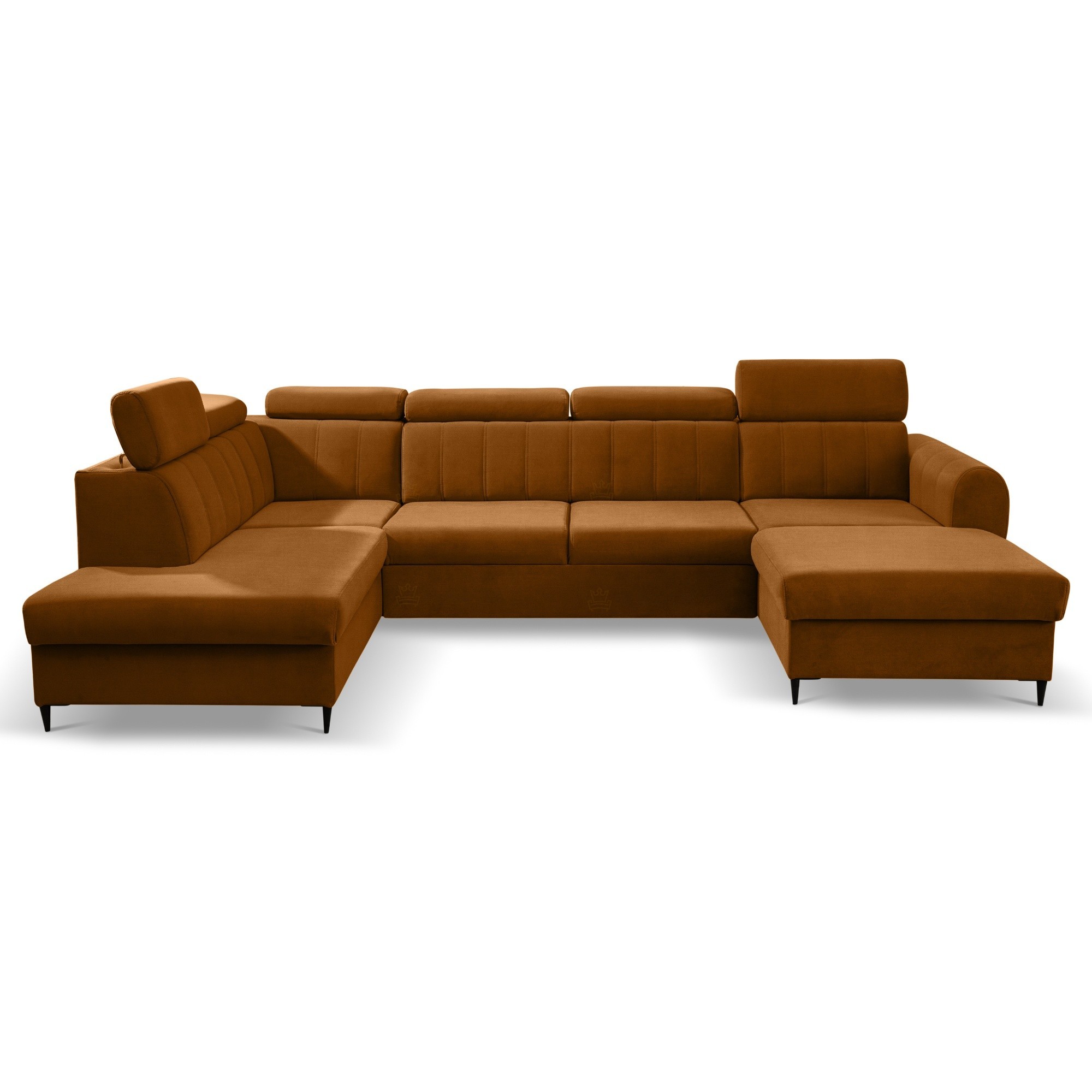Moderní sedací souprava Forewer je ideální pro ty, kteří požadují komfort a vysoké pohodlí. Styl jejího provedení je velice nadčasový a svými liniemi zapadne do každého interiéru. Nadchne především svým zajímavým kvalitním prošíváním a designovými černými nožkami o výšce 11cm. Na sedáky jsou použity kvalitní pružiny typu Faliste spolu s vysokoelastickou PUR pěnou T30. Velkou výhodou jsou polohovatelné záhlavníky, díky kterým si dopřejete ten nejpohodlnější odpočinek. Samozřejmostí je rozklad, díky kterému získáte plochu pro příležitostné spaní o rozměru 285x130cm. Praktický úložný prostor se nachází v obou bočních otomanech. Celočalouněná - vhodná do prostoru. Čalouněná je kvalitní látkou Vogue 09. V nabídce i v jiných barevných provedeních. Na hlavním obrázku je pravý roh!