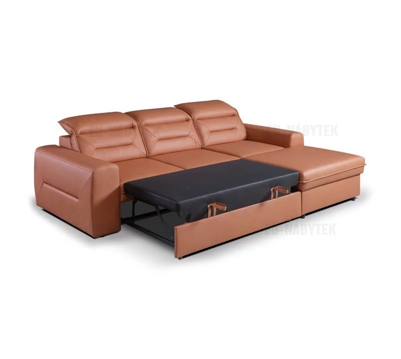 Rohová celočalouněná sedačka Sendi je extravagantní kousek, který bude apelovat na všechny, i ty nejnáročnější zákazníky. Perfektně se hodí do každého interiéru obývacího pokoje. Velkou výhodou jsou praktické polohovatelné záhlavníky, díky kterým si dopřejete ten nejpohodlnější odpočinek. Předností je velmi kvalitní prošití a zajímavé lemy, které sedačce dodávají ten správný design. Sendi je rohová sedačka s praktickým úložným prostorem v bočním otomanu a také spací plochou. Díky automatickému rozkladu získáte během pár sekund plochu o rozměru 128x212cm. Pohodlné sezení zaručují pružiny Faliste spolu s kvalitní HR pěnou. Celkové rozměry sedačky jsou 265x183x83/102cm. Čalouněná je kvalitní látkou Concept 8.
