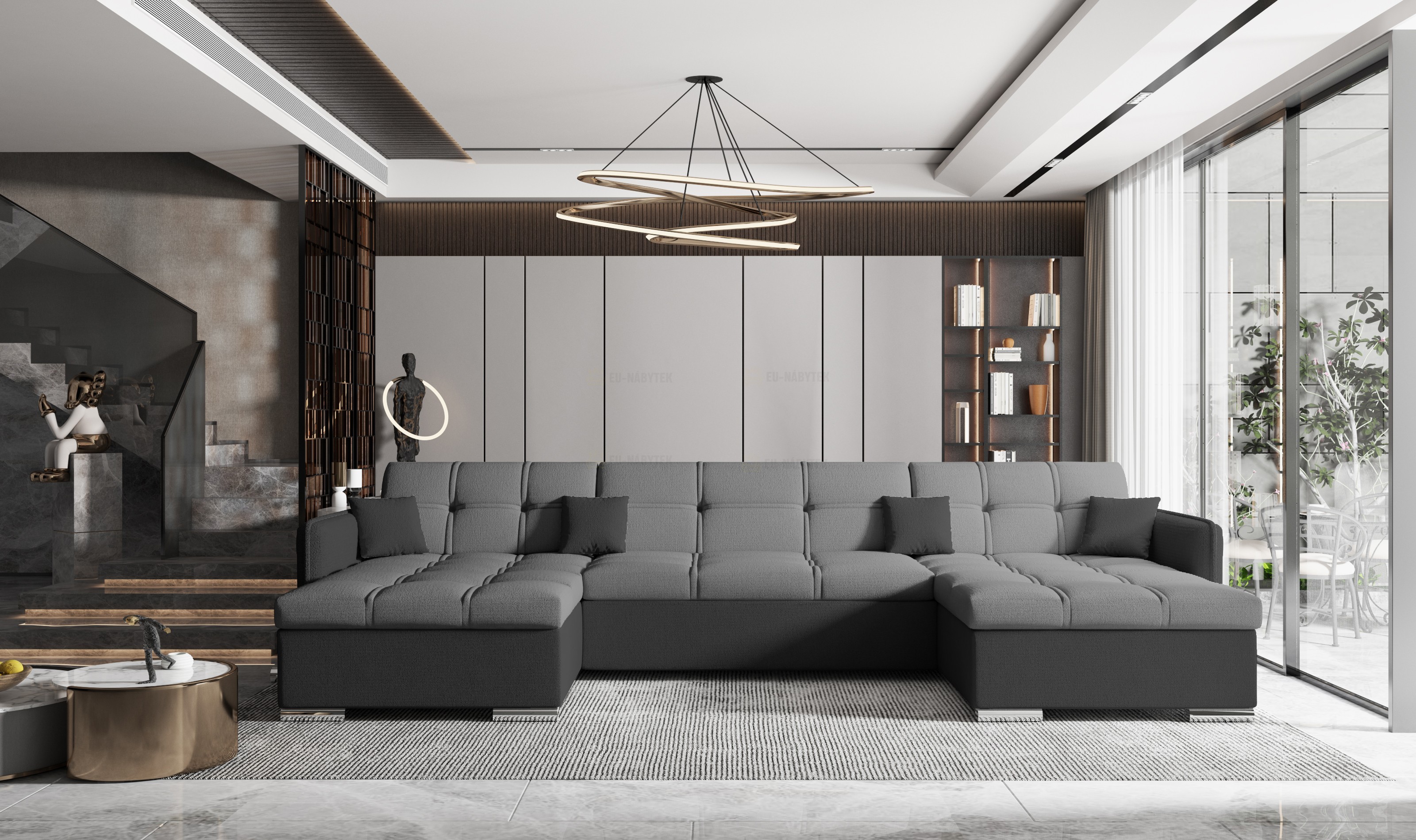 Sedací souprava LAKI je ideální pro ty, kteří ocení komfort a pohodlí. Prostorná sedačka, která se hodí do prostorných obývacích pokojů. Tkanina vysoké kvality, masivní pevná kostra, s kvalitní PUR pěnou T30 zaručují komfortní posezení. Nadchne především svým kvalitním prošitím, které sedačce dodá moderní design. Samozřejmostí je možnost rozkladu. Plocha po rozložení je o rozměru 130x325cm. Sedací souprava má také spoustu úložného prostoru, který se nachází v bočních otomanech. Moderní designové úzké područky, díky kterým tak získáte větší prostor pro sezení. Designové nožky jsou z kovu, délka je 10cm. Barevné provedení - Orinoco 95.