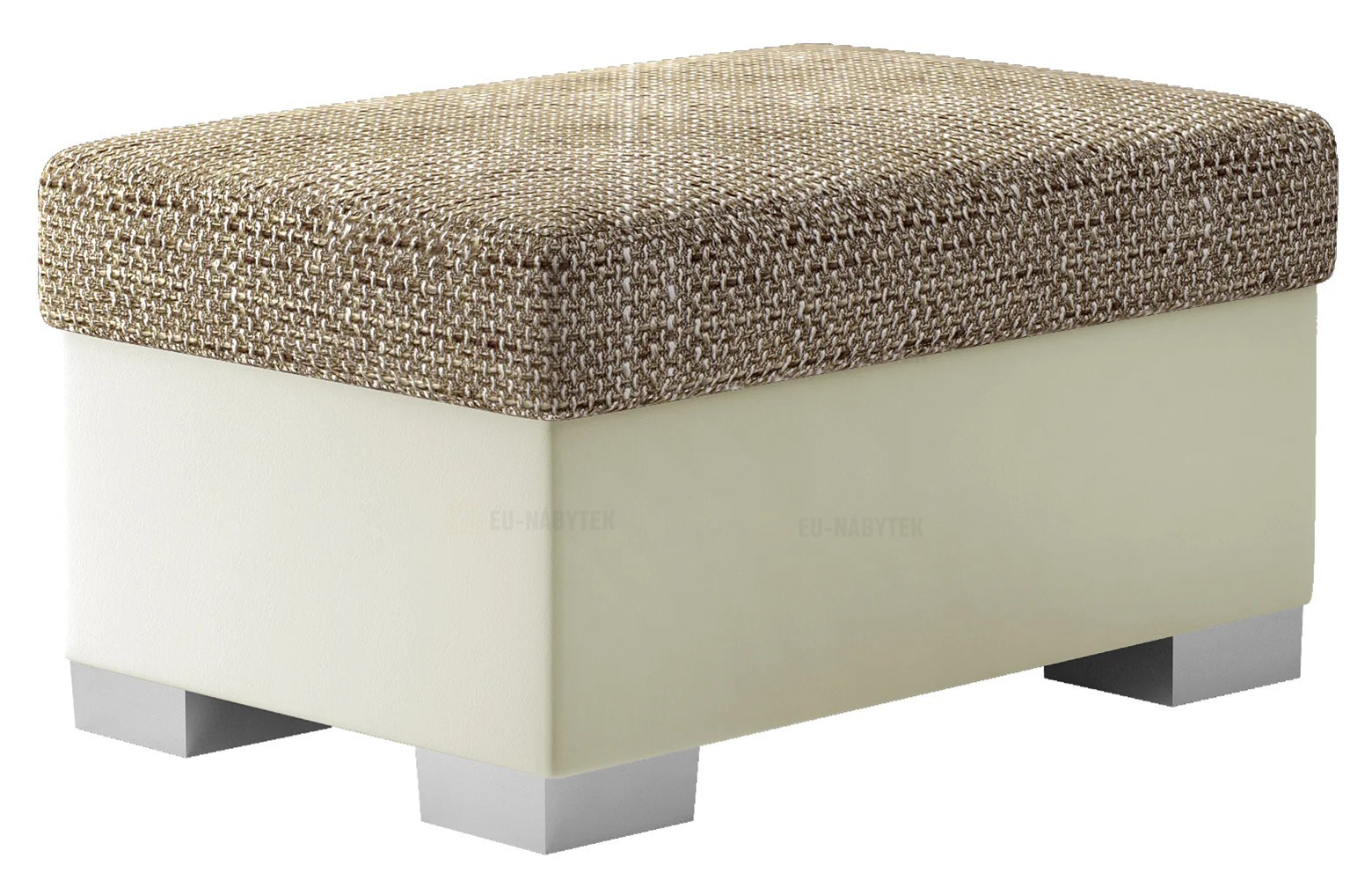Moderní taburet ROKO je v jednoduchém osvědčeném designu v obdelníkovém tvaru. Pohodlné sezení zaručuje vysokoelastická PUR pěna. Nohy jsou vyrobeny z odolného plastu v stříbrném provedení. Rozměry taburetu jsou 85x55x38cm. Výška nožek je 7cm. Čalouněná je v kombinaci látek Berlin 01 a bílá ekokůže Madryt 120. V nabídce i v jiném barevném provedení.