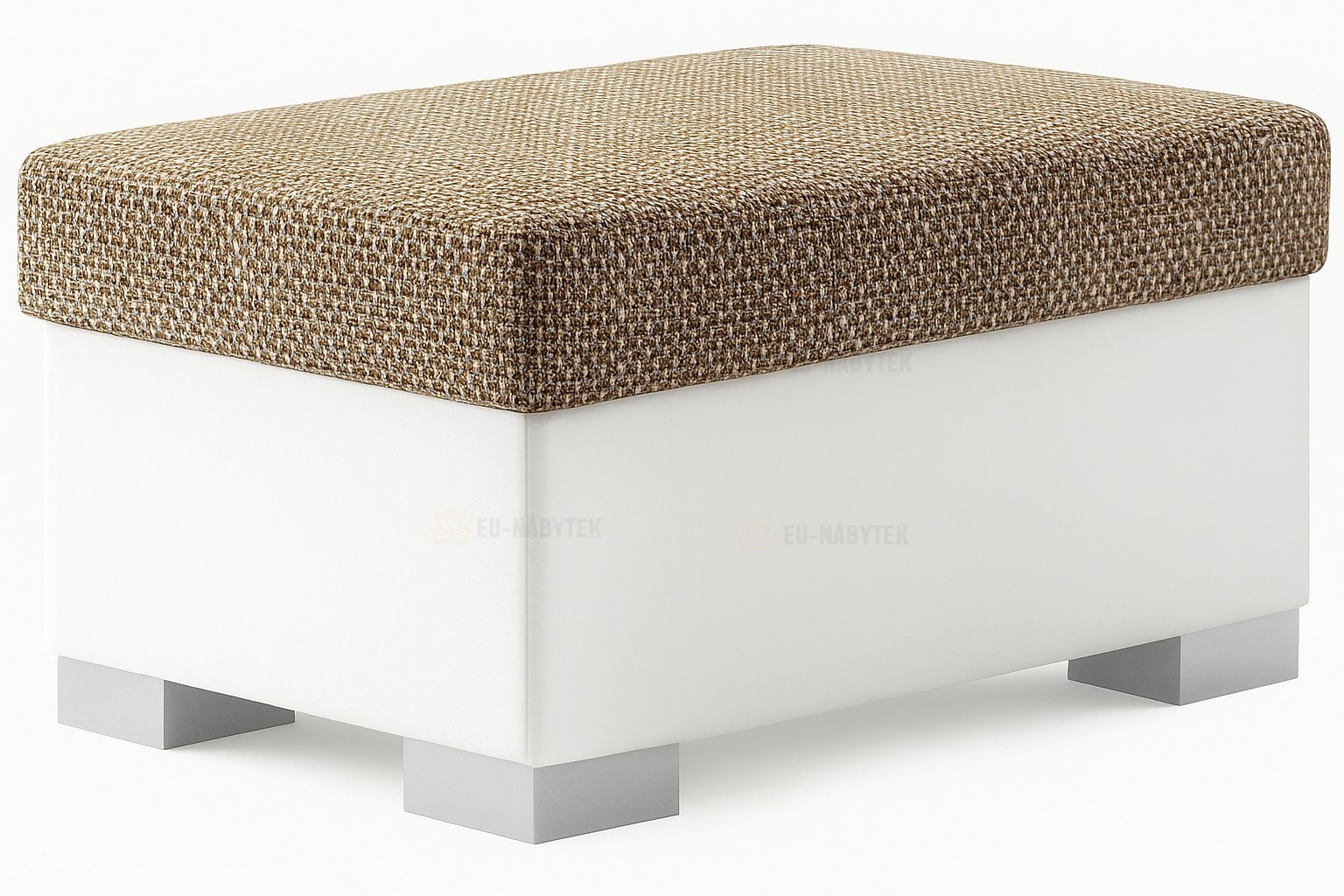 Moderní taburet ROKO je v jednoduchém osvědčeném designu v obdelníkovém tvaru. Pohodlné sezení zaručuje vysokoelastická PUR pěna. Nohy jsou vyrobeny z odolného plastu v stříbrném provedení. Rozměry taburetu jsou 85x55x38cm. Výška nožek je 7cm. Čalouněná je v kombinaci látek Sawana 05 a černá ekokůže Madryt 1100. V nabídce i v jiném barevném provedení.