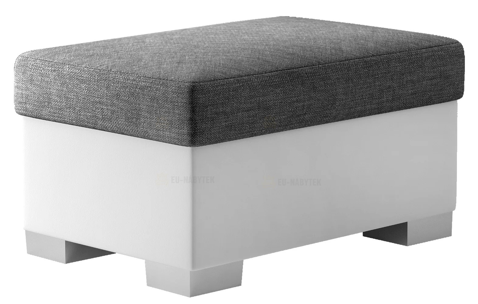 Moderní taburet ROKO je v jednoduchém osvědčeném designu v obdelníkovém tvaru. Pohodlné sezení zaručuje vysokoelastická PUR pěna. Nohy jsou vyrobeny z odolného plastu v stříbrném provedení. Rozměry taburetu jsou 85x55x38cm. Výška nožek je 7cm. Čalouněná je v kombinaci látek Sawana 05 a bílá ekokůže Madryt 120. V nabídce i v jiném barevném provedení.