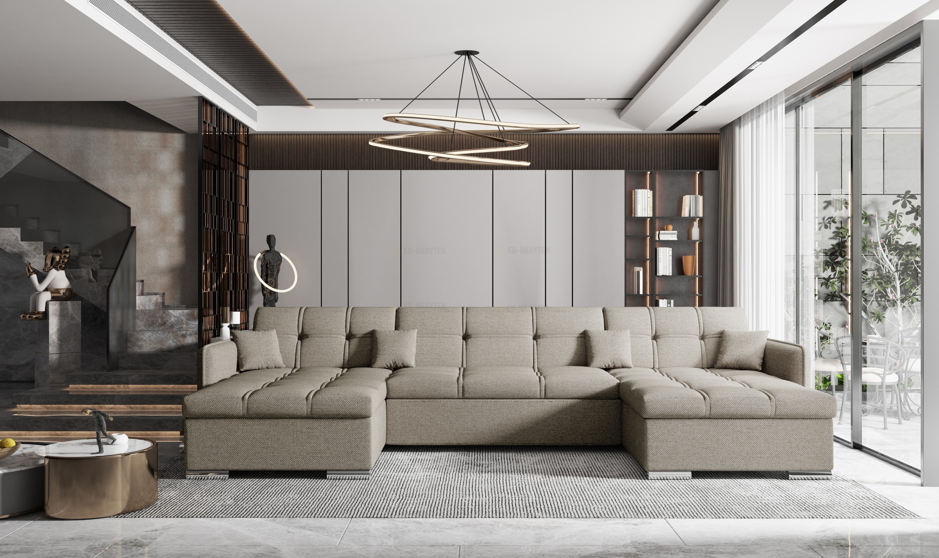 Sedací souprava LAKI je ideální pro ty, kteří ocení komfort a pohodlí. Prostorná sedačka, která se hodí do prostorných obývacích pokojů. Tkanina vysoké kvality, masivní pevná kostra, s kvalitní PUR pěnou T30 zaručují komfortní posezení. Nadchne především svým kvalitním prošitím, které sedačce dodá moderní design. Samozřejmostí je možnost rozkladu. Plocha po rozložení je o rozměru 130x325cm. Sedací souprava má také spoustu úložného prostoru, který se nachází v bočních otomanech. Moderní designové úzké područky, díky kterým tak získáte větší prostor pro sezení. Designové nožky jsou z kovu, délka je 10cm. Barevné provedení - Freya 21010.
