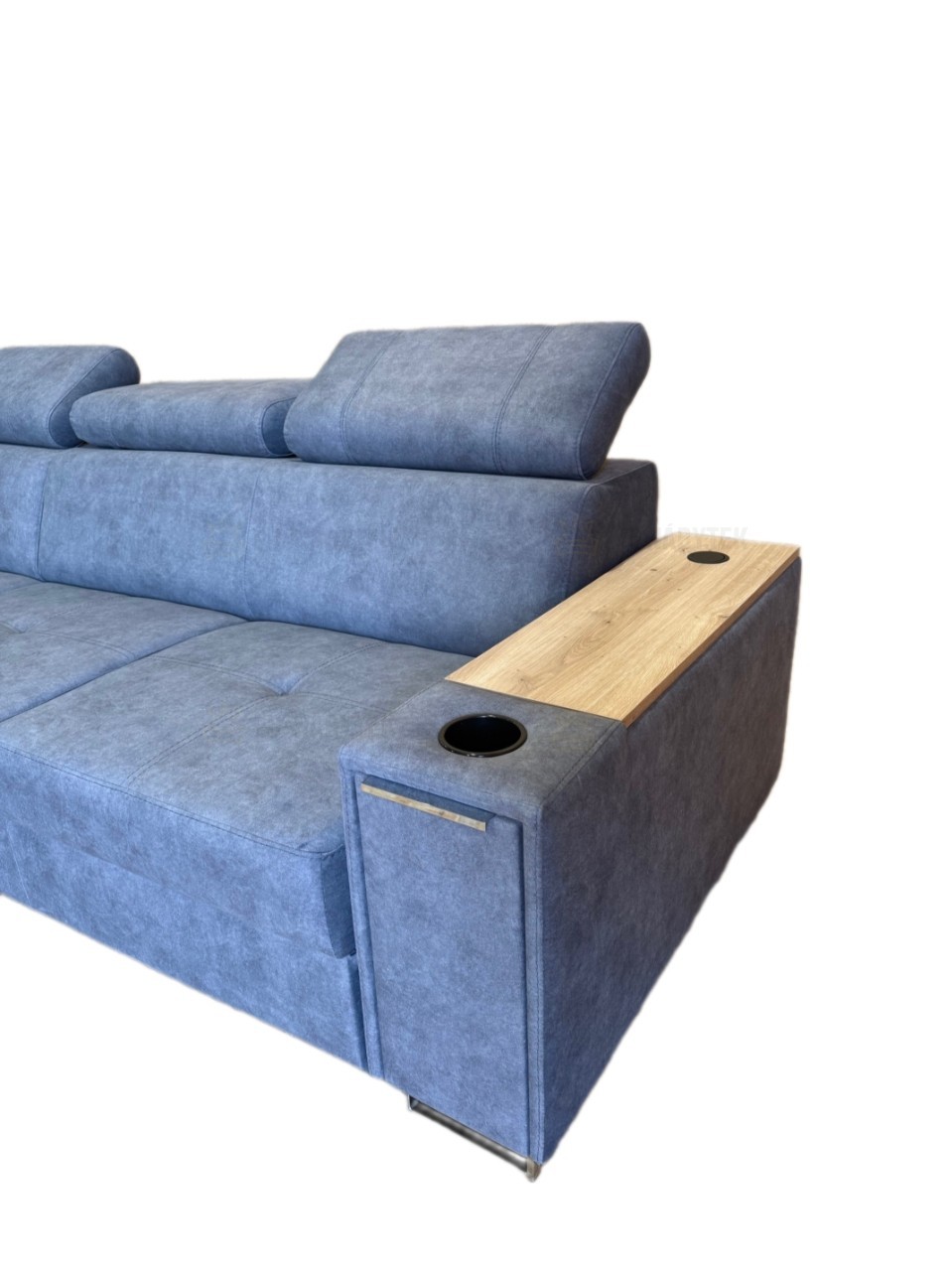 Luxusní prostorná sedací souprava Sergia vhodná pro ty nejnáročnější zákazníky. Sedačka nabízí vysoký komfort a pohodlí. Disponuje praktickým barem (28x98x58cm) s úložným prostorem, sadou vysunujících zásuvek a dvěmi držáky na pití. Vrchní deska na barové části je vyrobena z kvalitní LTD. Vzhledem k očalouněným zádům je vhodná do prostoru. Na sedáky jsou použity pružiny typu Faliste a vysokoelastická PUR pěna. Velkou výhodou jsou polohovatelné záhlavníky, díky kterým si dopřejete pohodlný odpočinek. Samozřejmostí je automatický úložný prostor v bočním otomanu a rozklad pro příležitostné spaní o rozměru 125x200cm . Čalouněná je kvalitní látkou Cloud 97. Designové kovové nožky.