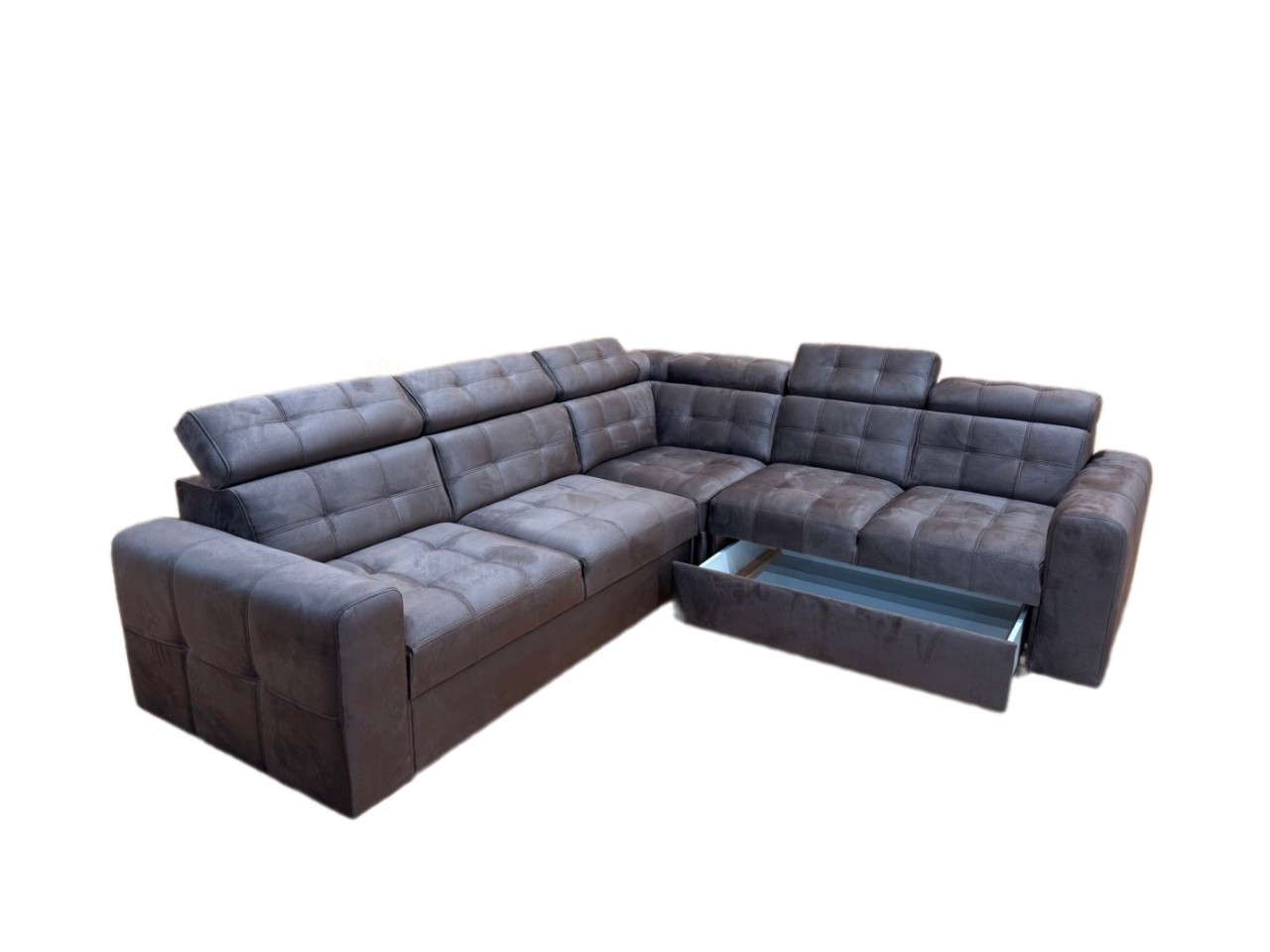 Luxusní rohová sedačka IRMA, která nadchne především svým kvalitním zpracováním prošití. Vhodná i pro náročnější zákazníky. Barevná červená nit prošití, která dodává sedačce jedinečný vzhled. Konstrukce sedačky je z kvalitního materiálu včetně sezení z PUR pěny a pružin Faliste a Bonell. Velkou výhodou jsou praktické polohovací záhlavníky, díky kterým si dopřejete ten nejpohodlnější odpočinek. Doplněna je moderními stříbrnými nožičkami. Samozřejmostí je praktický úložný prostor pro úschovu lůžkovin v bočním otomanu a také automatický rozklad, který nesmí sedačce chybět. Po rozložení tak získáte spací plochu o rozměru 203x125cm. Čalouněná je kvalitní látkou Element 05. Celočalouněná - vhodná do prostoru. V nabídce i v jiných rozměrech.