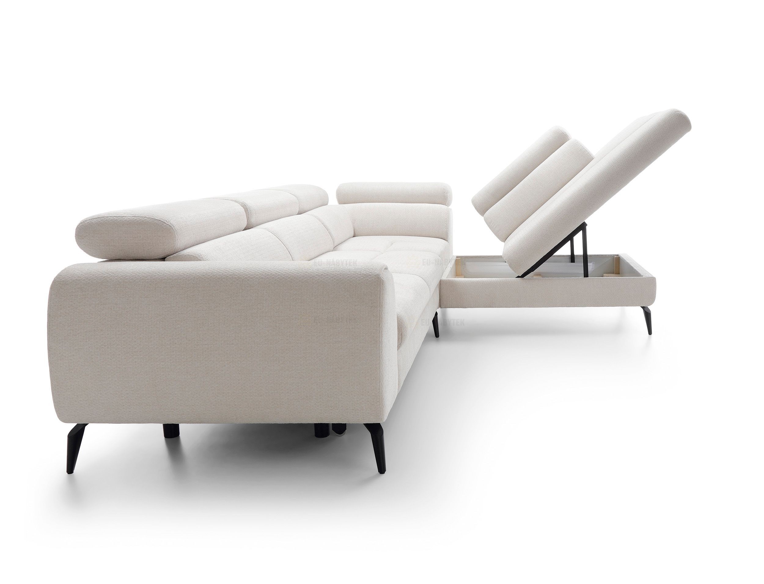Luxusní sedací souprava JAZIMA s elegantním designem, která dodá vašemu interiéru perfektní vzhled. Sedačka vyniká svým luxusním zpracováním včetně praktických polohovatelných záhlavníků, díky kterým si dopřejete ten nejpohodlnější odpočinek. Sedačka tak nadchne i ty nejnáročnější zákazníky. Moderním prvkem jsou černé kovové nožky o výšce 15cm. Rozměry sedačky jsou 271x216x75/93cm. Pohodlné sezení zaručuje kvalitní polyuretanová pěna a pružiny Faliste. Disponuje také úložným prostorem v bočním otomanu a rozkladem na příležitostné spaní. Spací plocha je 195x122cm. Navíc je celočalouněná, proto je vhodná do prostoru. V nabídce také v provedení do U a menší L. Čalouněná je kvalitní látkou Element 17.