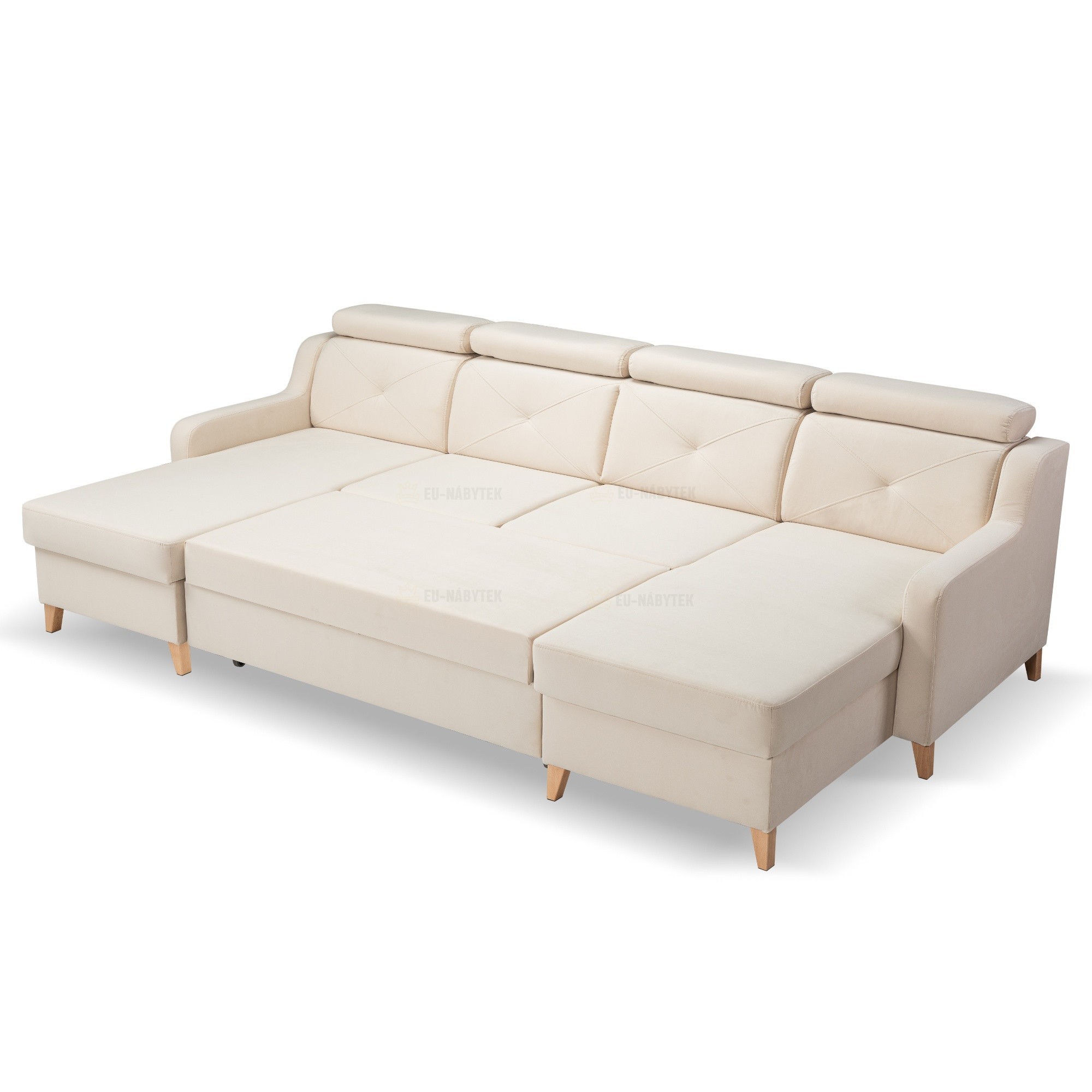 Praktická moderní sedačka Mambo, která nadchne i ty nejnáročnější zákazníky. Pohodlné sezení zaručují pružiny Faliste a vysoce flexibilní kvalitní PUR pěna. Předností této sedačky jsou polohovatelné záhlavníky, díky kterým si dopřejete ten nejpohodlnější odpočinek. Sedačka je celočalouněná. Lze ji tedy umístit do prostoru. Velkou výhodou je automatický rozklad, díky kterému získáte spací plochu o rozměru 260x128cm. Samozřejmostí je i praktický úložný prostor. Celkové rozměry sedačky jsou 286x165x96cm. Výška sedu je 44cm. Vysoké nožky 10cm z masivního dřeva, které dodají sedačce elegantní vzhled. Čalouněná je kvalitní látkou Jasmine 96. V nabídce ji naleznete v několika barevných provedeních.