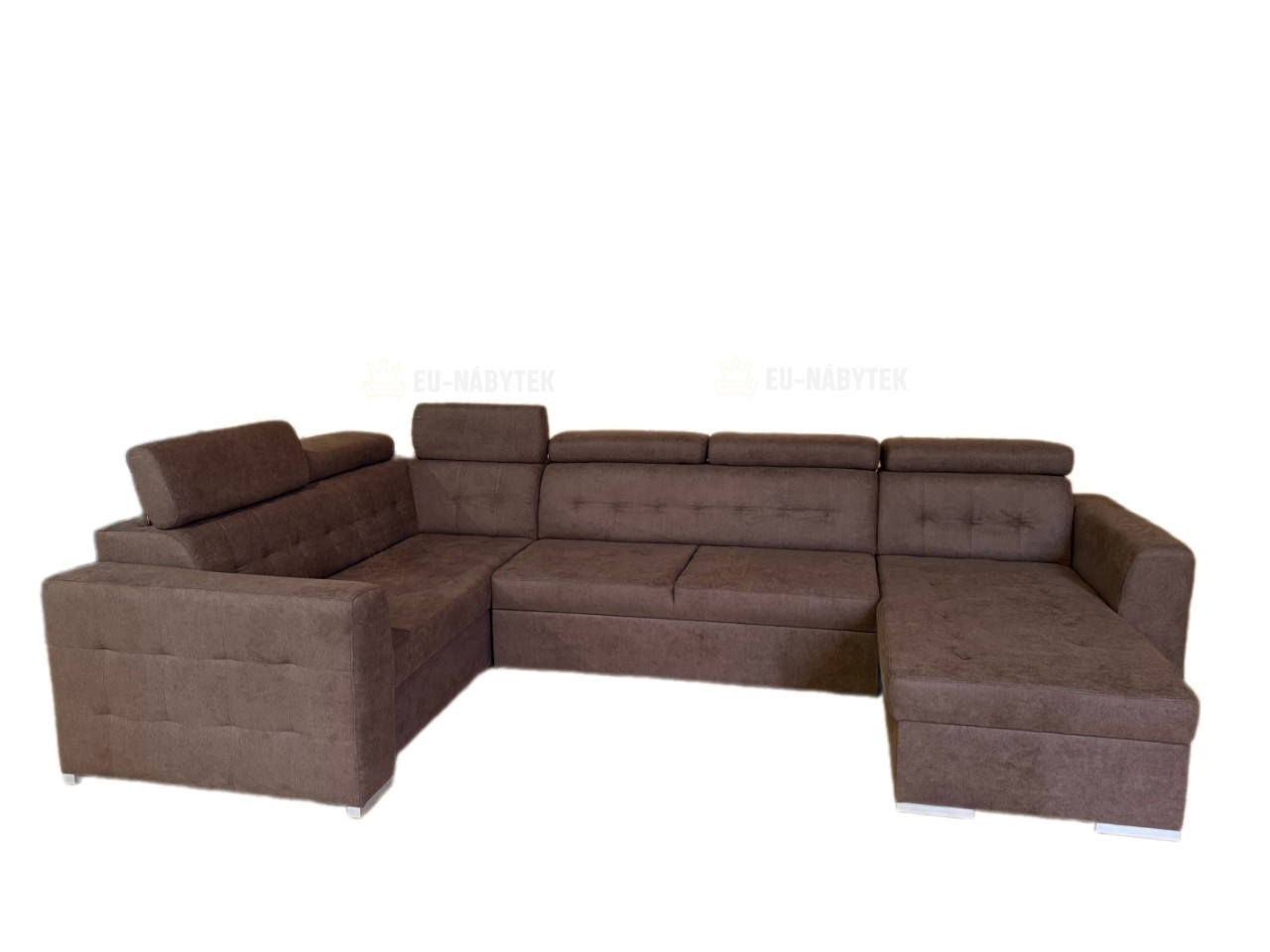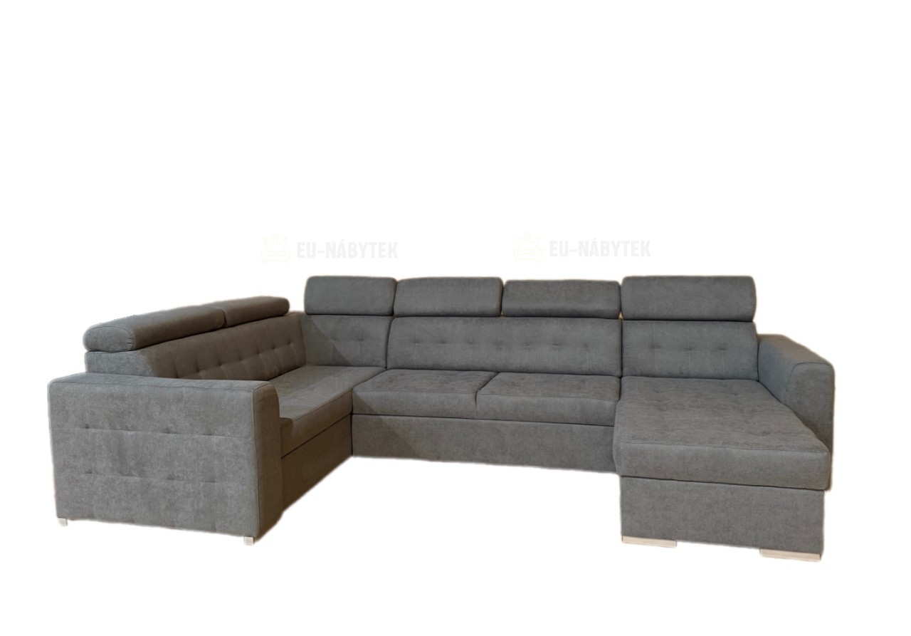 Moderní sedací souprava Target je ideální pro ty, kteří požadují komfort a vysoké pohodlí. Styl jejího provedení je velice nadčasový a svými liniemi zapadne do každého interiéru. Na sedáky jsou použity pružiny typu Faliste spolu s vysokoelastickou PUR pěnou. Velkou výhodou jsou polohovatelné záhlavníky. Pozornost upoutá kvalitní prošité sezení včetně opěrné části a područek. Samozřejmostí je úložný prostor v bočních otomanech a automatický rozklad, díky kterému získáte plochu na spaní o rozměru 270x125cm. Celkové roměry sedačky jsou 335x175/205x98/101cm. Čalouněná je kvalitní látkou Soro 97. V nabídce i v jiném barevném provedení. Možnost objednání taburetu ve dvou různých velikostech. Na hlavním obrázku je pravý roh!