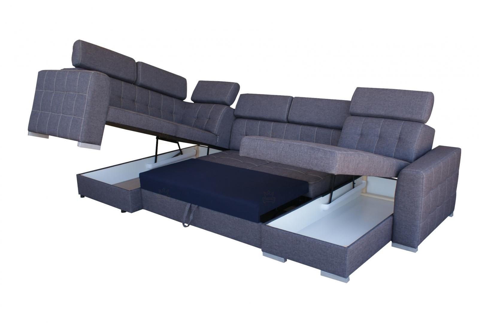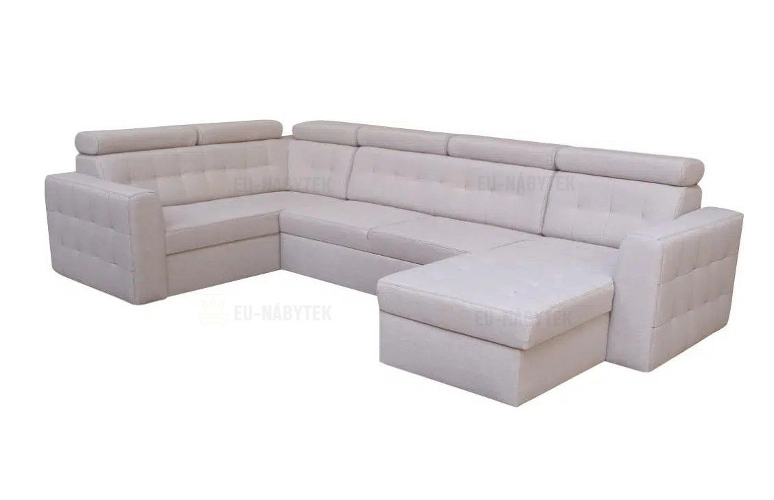Moderní sedací souprava Target je ideální pro ty, kteří požadují komfort a vysoké pohodlí. Styl jejího provedení je velice nadčasový a svými liniemi zapadne do každého interiéru. Na sedáky jsou použity pružiny typu Faliste spolu s vysokoelastickou PUR pěnou. Velkou výhodou jsou polohovatelné záhlavníky. Pozornost upoutá kvalitní prošité sezení včetně opěrné části a područek. Samozřejmostí je úložný prostor v bočních otomanech a automatický rozklad, díky kterému získáte plochu na spaní o rozměru 270x125cm. Celkové roměry sedačky jsou 335x175/205x98/101cm. Čalouněná je kvalitní látkou Soro 97. V nabídce i v jiném barevném provedení. Možnost objednání taburetu ve dvou různých velikostech. Na hlavním obrázku je pravý roh!