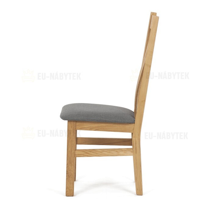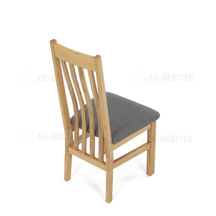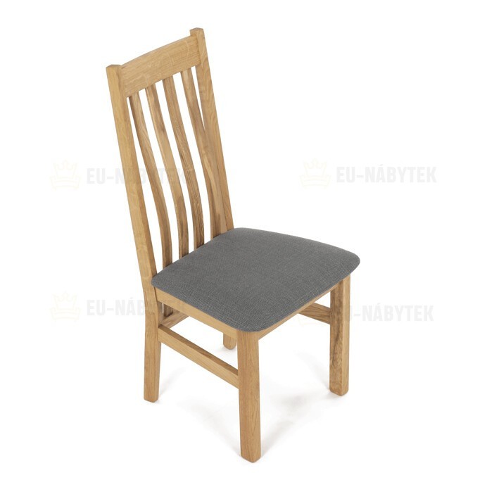 Dřevěná jídelní židle, potah antracitově šedá látka, masiv dub, přírodní odstín