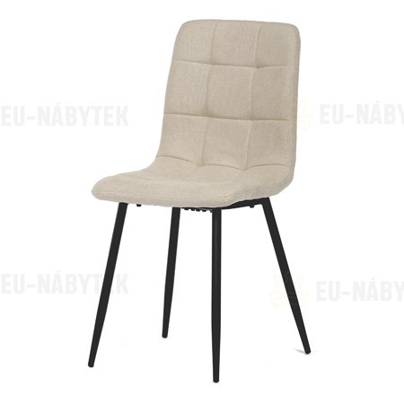 Jídelní židle v industriálním stylu. Potah je z hladké látky v krémové barvě. Výrazné je čtvercové prošití čelních ploch sedáku i opěradla. Polstrování je z kvalitní PU pěny. Stabilitu židle zajišťují čtyři kónické kovové nohy s kvalitním práškovým nástřikem v černé matné barvě. Ukončené jsou…