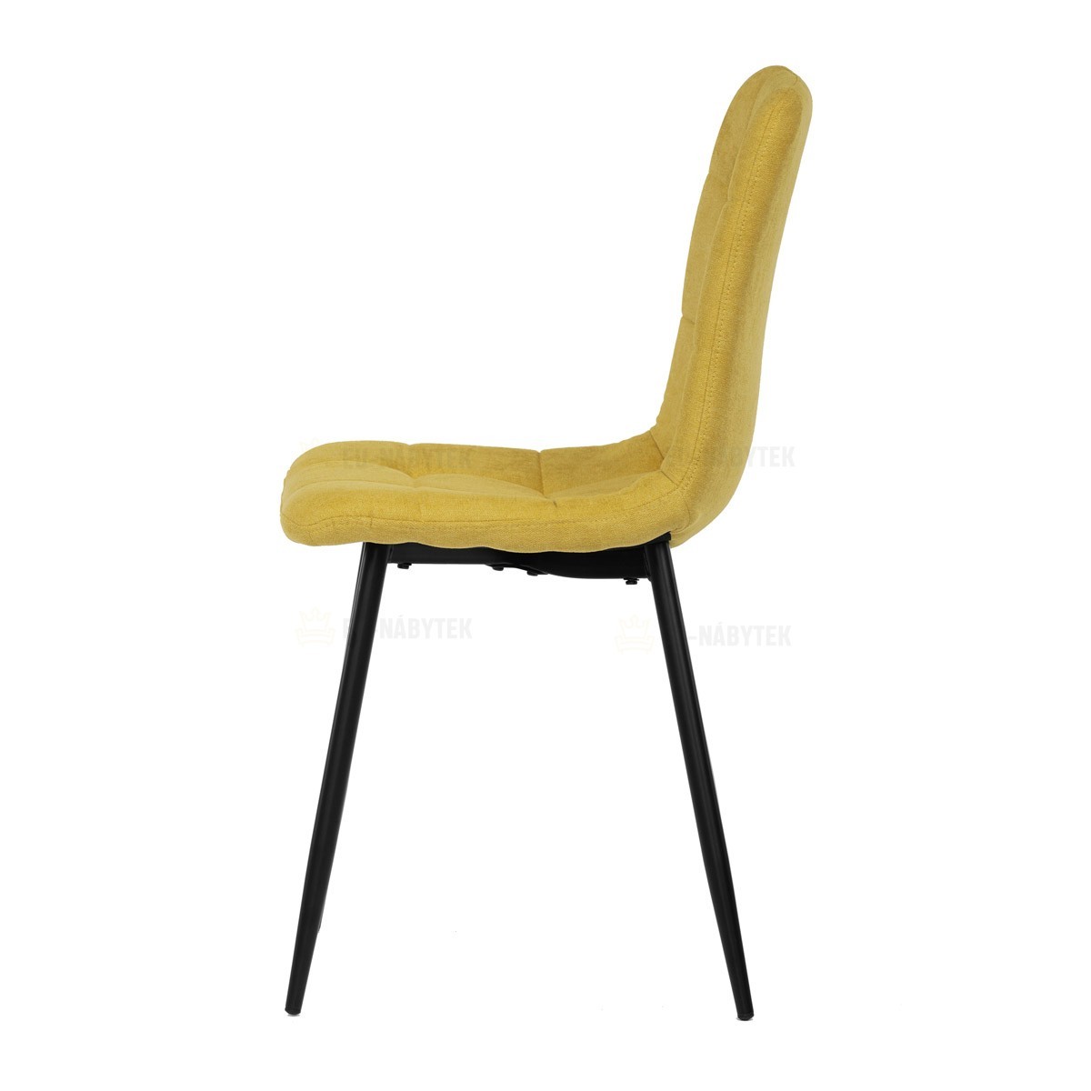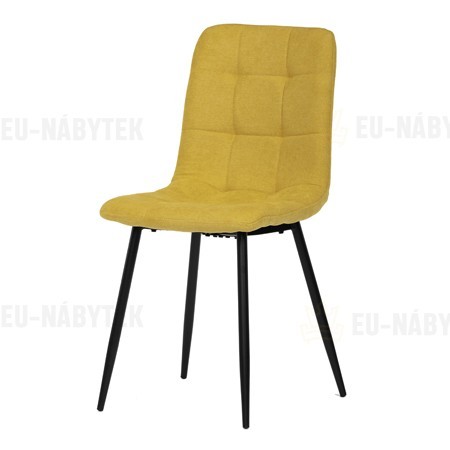 Jídelní židle v industriálním stylu. Potah je z hladké látky ve velmi žádané hořčicově žluté barvě. Výrazné je čtvercové prošití čelních ploch sedáku i opěradla. Polstrování je z kvalitní PU pěny. Stabilitu židle zajišťují čtyři kónické kovové nohy s kvalitním práškovým nástřikem v černé matné…