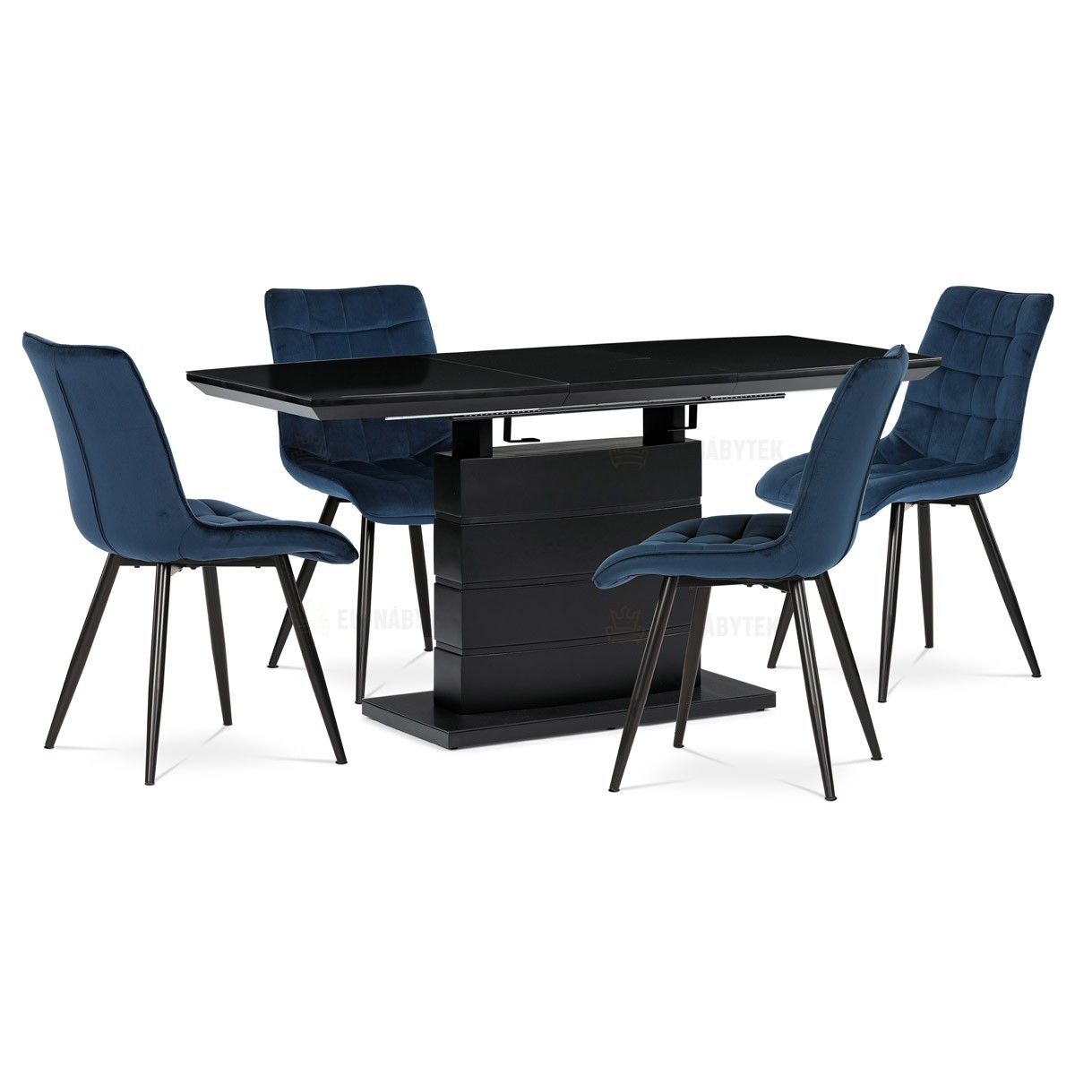 Jídelní židle, potah v modrém sametu, kovové podnoží v černé práškové barvě