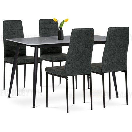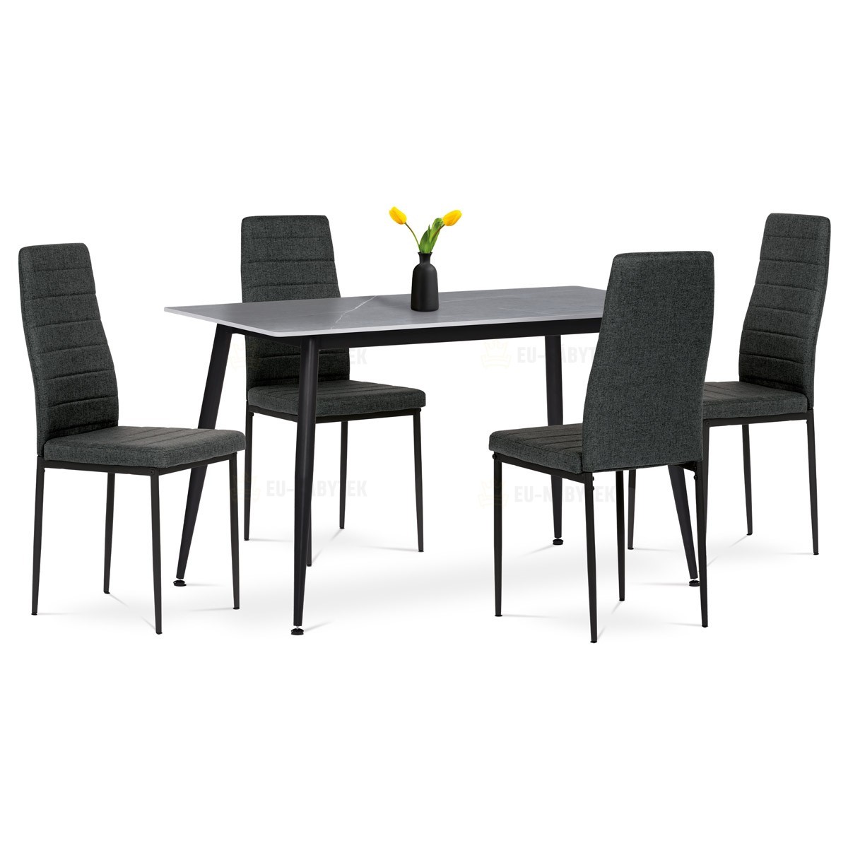 Moderní jídelní set Autronic v industriálním stylu je skvělou volbou pro vaši jídelnu. Obdélníkový stůl s deskou ze slinuté keramiky v šedém mramorovém dekoru působí elegantně a je odolný vůči poškrábání. Stabilitu zajišťují černé kovové nohy s jemně kónickým tvarem. Pohodlné židle mají čalounění z…