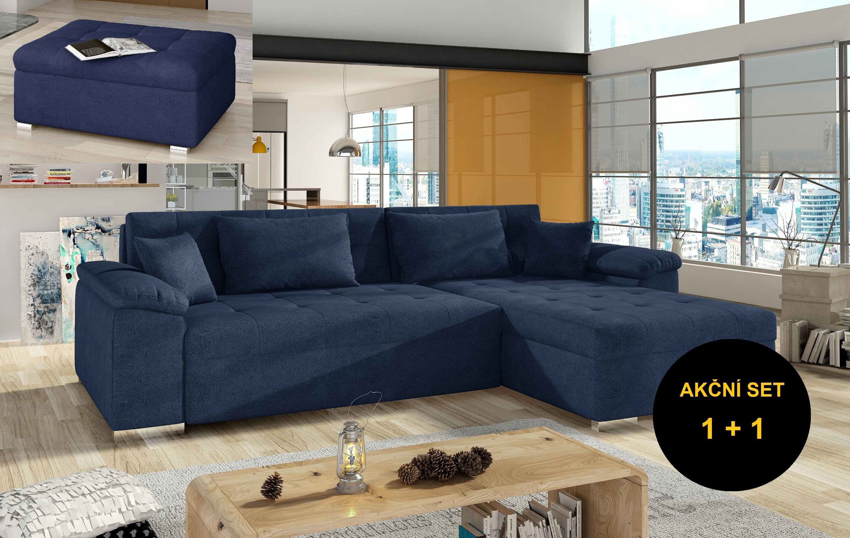 Rohová sedačka Jamajka je velmi moderního vzhledu. Sedačka má praktický rozkládací prostor pro příležitostné přespaní. Po rozložení tak získáte spací plochu o rozměru 223x130cm. Rozklad je snadný pomoci automatu. Není třeba žádné sklopení zadní části. Pohodlné sezení zaručují pružiny Faliste spolu s PUR pěnou T30. Výška sedu je 39cm. Barevné provedení - látka Orinoco 80. K sedačce zdarma taburet Dixi ve stejné látce o rozměrech 79x49x41m. Moderní design doplňují kovové chromované nožičky. Velmi praktický je úložný prostor pro úschovu potřebných věcí.