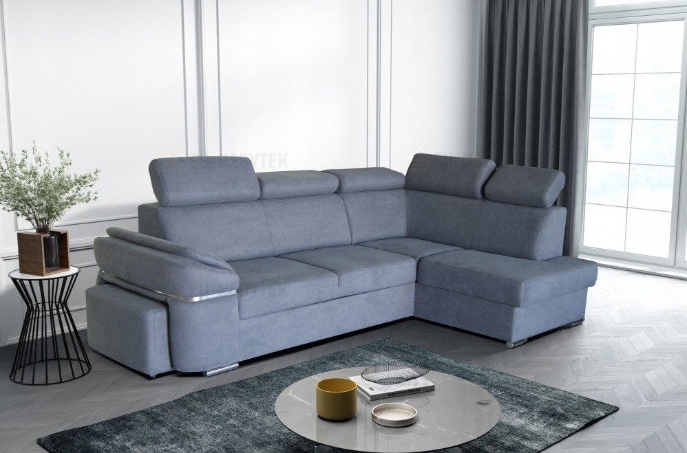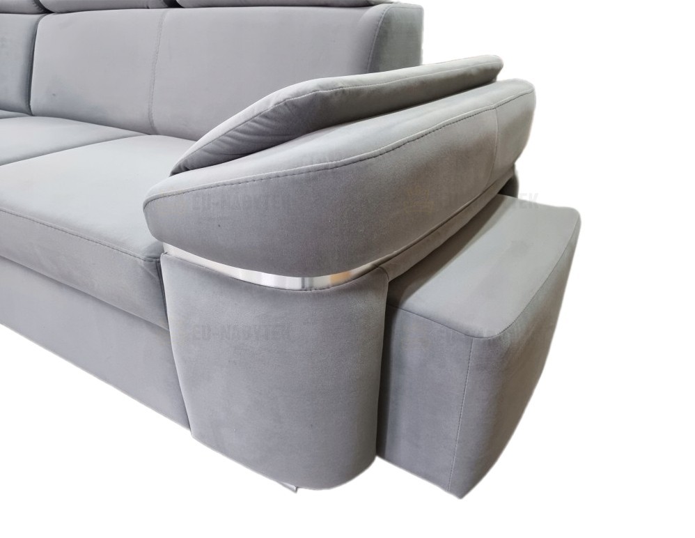 Luxusní prostorná sedací souprava Avares vhodná pro ty nejnáročnější zákazníky. Sedačka, která nabízí vysoký komfort a pohodlí. Na sedáky jsou použity kvalitní pružiny typu Faliste a vysokoelastická PUR pěna. Velkou výhodou jsou polohovatelné záhlavníky, díky kterým si dopřejete pohodlný odpočinek. Samozřejmostí je automatický úložný prostor v bočním otomanu a rozklad pro příležitostné spaní o rozměru 125x195cm. Moderním prvkem je velmi zajímavá područka s dekoračním střbrným páskem, která sedačce dodá nadčasový design. Velkou předností je taburet v boční područce, díky kterému získáte další plochu pro pohodlné sezení. Vzhledem k očalouněným zádům je vhodná do prostoru. Čalouněná je kvalitní látkou Mono 245. V nabídce ji naleznete v různých barevných provedeních.