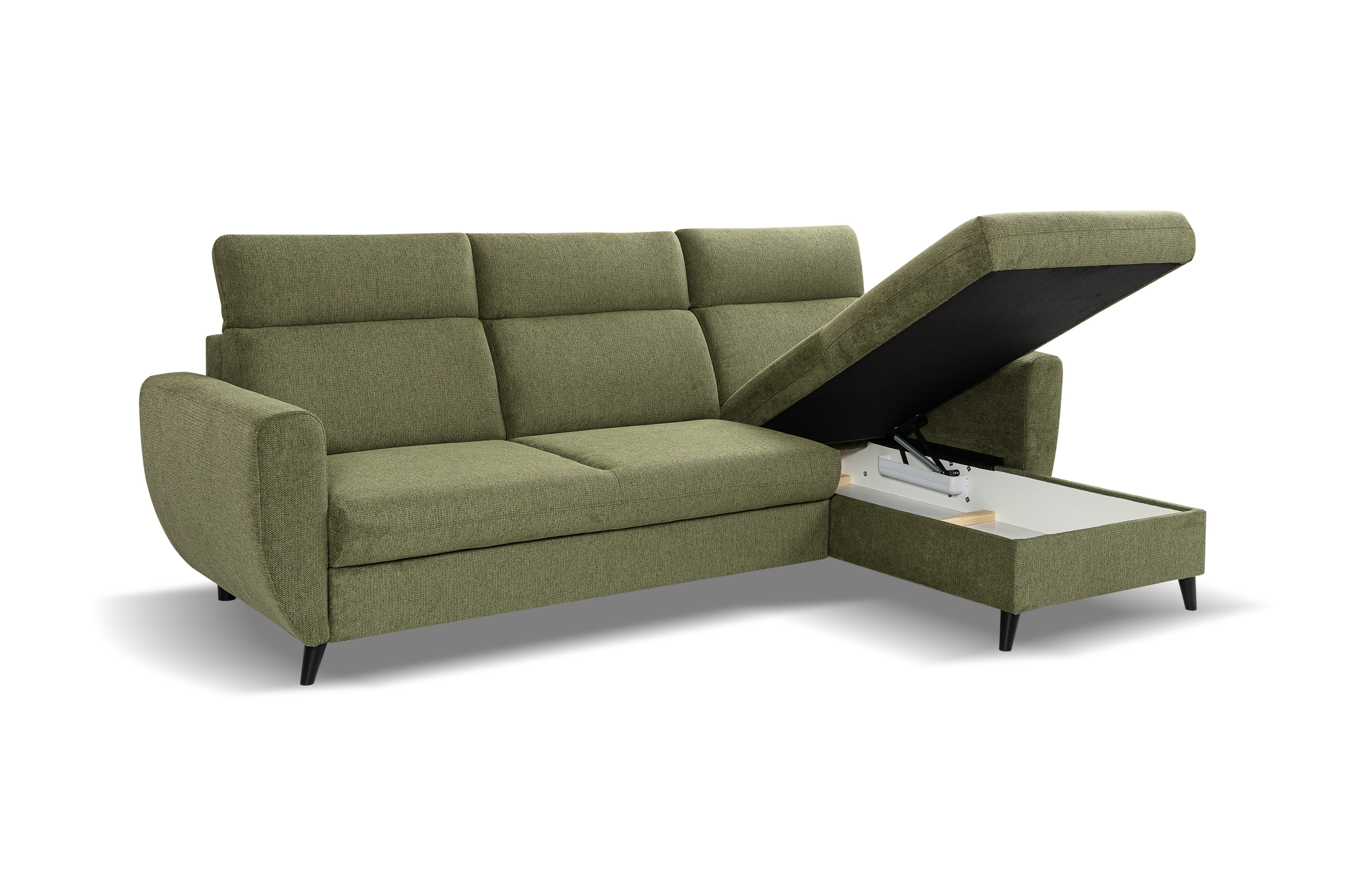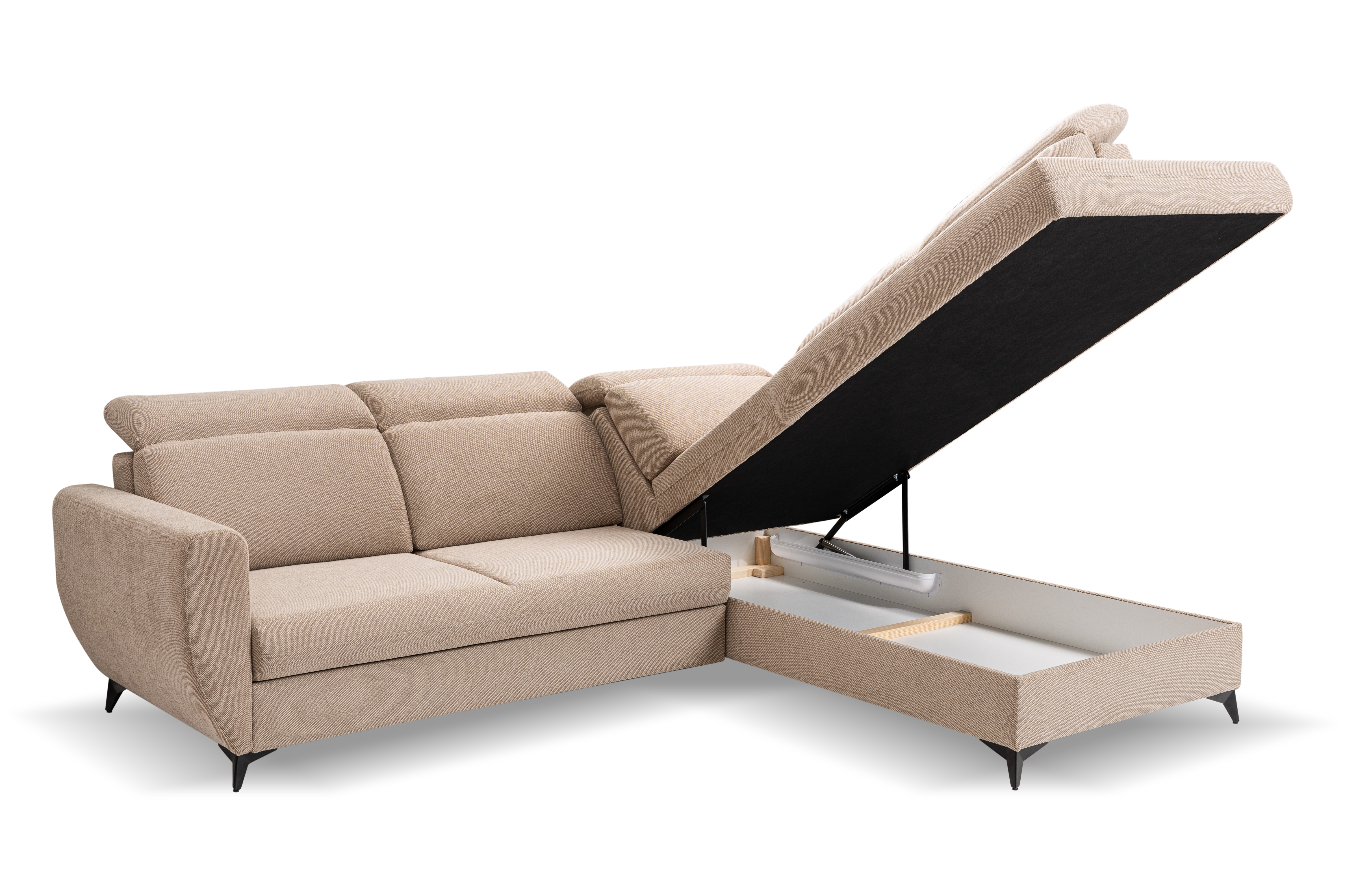 Moderní sedací souprava Torrino je ideální pro ty, kteří požadují komfort a vysoké pohodlí. Styl jejího provedení je velice nadčasový a svými liniemi zapadne do každého interiéru. Nadchne především svými designovými černými nožkami, které dodávají sedačce luxusní vzhled. Na sedáky jsou použity kvalitní pružiny typu Faliste spolu s vysokoelastickou PUR pěnou T30. Velkou výhodou jsou polohovatelné záhlavníky, díky kterým si dopřejete ten nejpohodlnější odpočinek. Samozřejmostí je rozklad, díky kterému získáte plochu pro příležitostné spaní o rozměru 224x125cm. Praktický úložný prostor se nachází v bočním otomanu. Celkové rozměry sedačky jsou 258x165x105cm. Celočalouněná - vhodná do prostoru. Čalouněná je kvalitní látkou Aragon 39.
