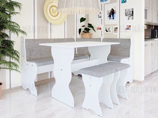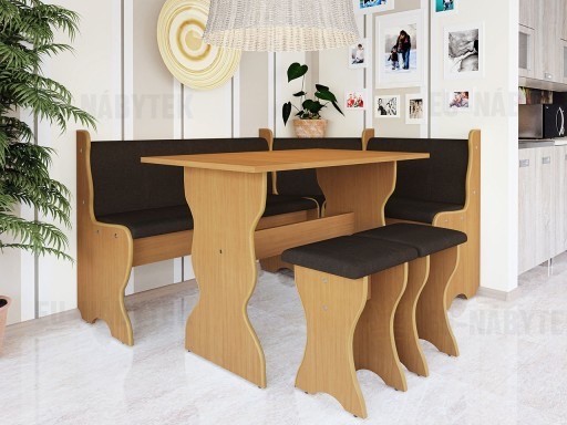 Rohový jídelní set Ambrela je vhodný do interiérů Vašeho domova, např. kuchyní, jídelen, ale i do restaurací a hotelů. Kvalitní provedení Vám zajistí příjemné a pohodlné posezení u snídaně, oběda či večeře. Tento set ocení převážně ti, kteří mají rádi tradiční a zároveň jednoduchý styl. Skládá se z rohové lavice, jídelního stolu a dvou taburetek. Sedací část je čalounění kvalitní potahovou látkou. Nadchne především zajímavými zaoblenými tvary, které dodávají sestavě netradiční vzhled. K dostání je v několika barevných provedeních.