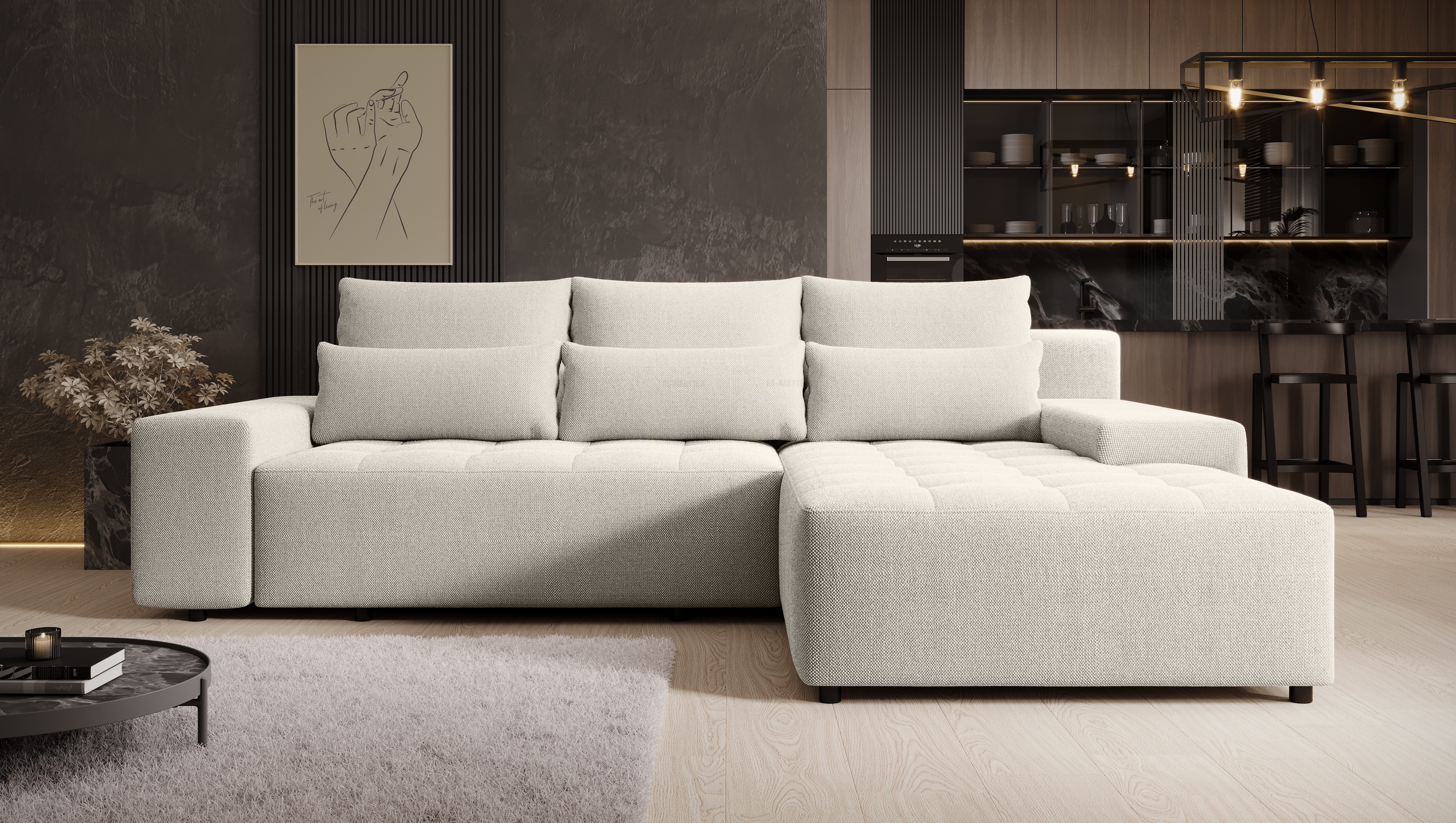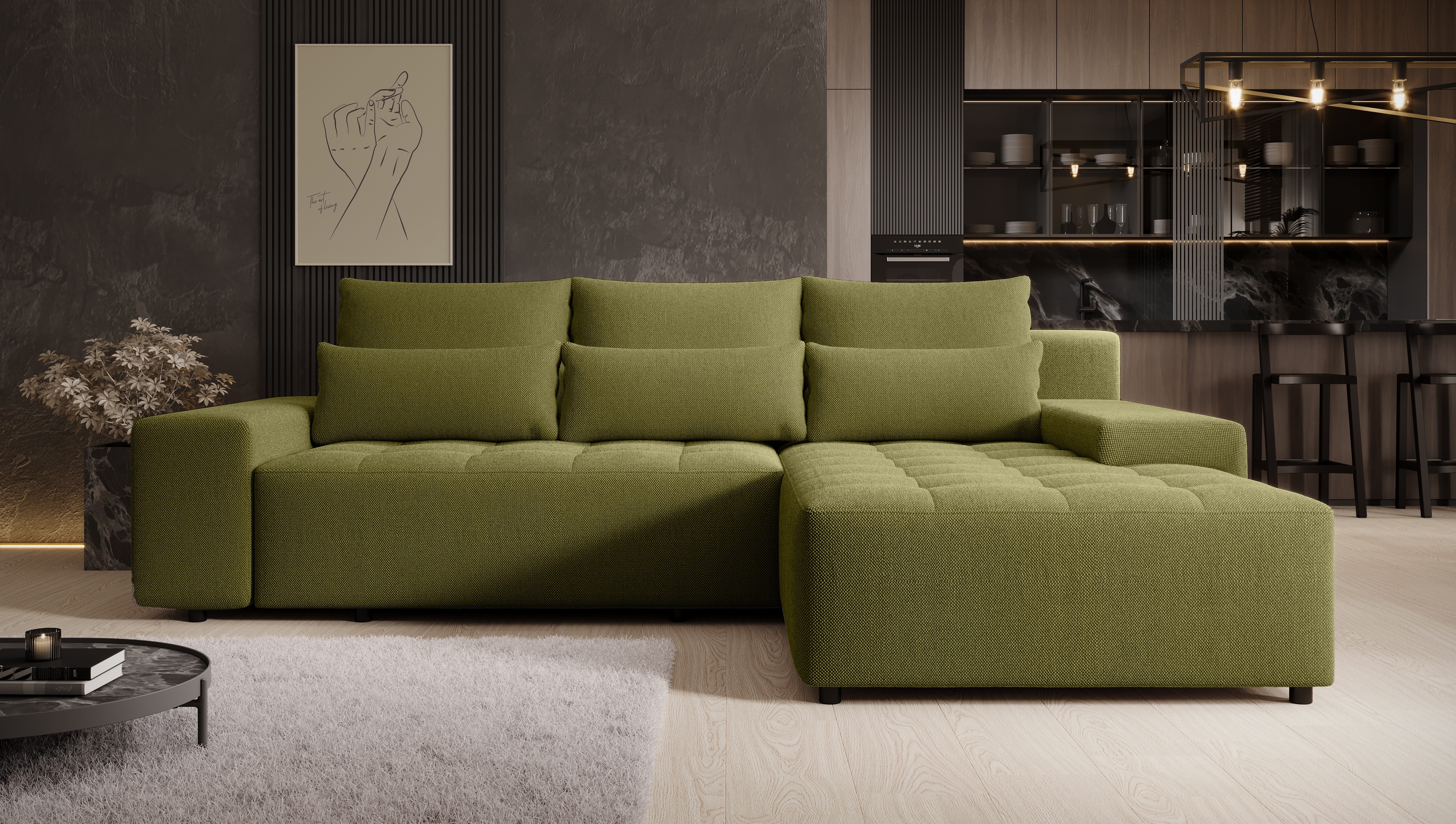 Sedací souprava Canaria je ideální pro ty, kteří ocení komfort a pohodlí. Vzhledem k automatickému rozkladu je vhodná i pro ty nejnáročnější zákazníky. Po rozložení vznikne spací plocha 134x204cm. V prostřední části pak naleznete úložný prostor pro lůžkoviny. Tkanina je velmi vysoké kvality. Pohodlné a komfortní posezení zaručuje masivní pevná kostra, pružinové jádro Faliste s kvalitní PUR pěnou T30. Hloubka sedu bez polštářů 88cm, s polštáři 53cm. Praktické jsou polštáře, které mají potah na zip. Sedačka je celočalouněná, vhodná do prostoru. Barevné provedení - Curio 39. V nabídce i v jiném barevném provedení.