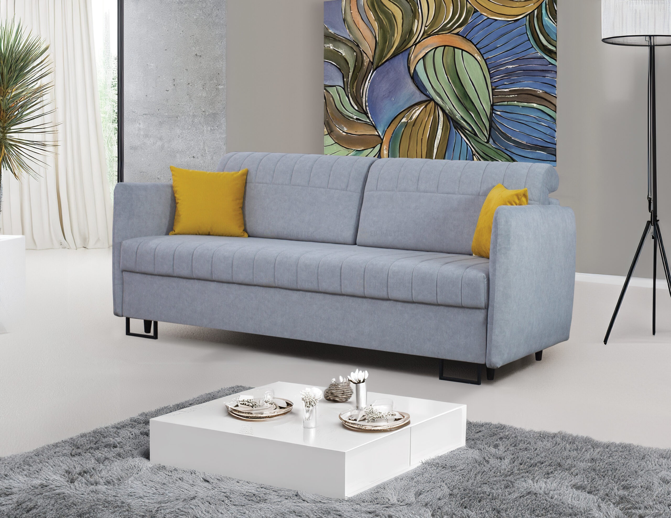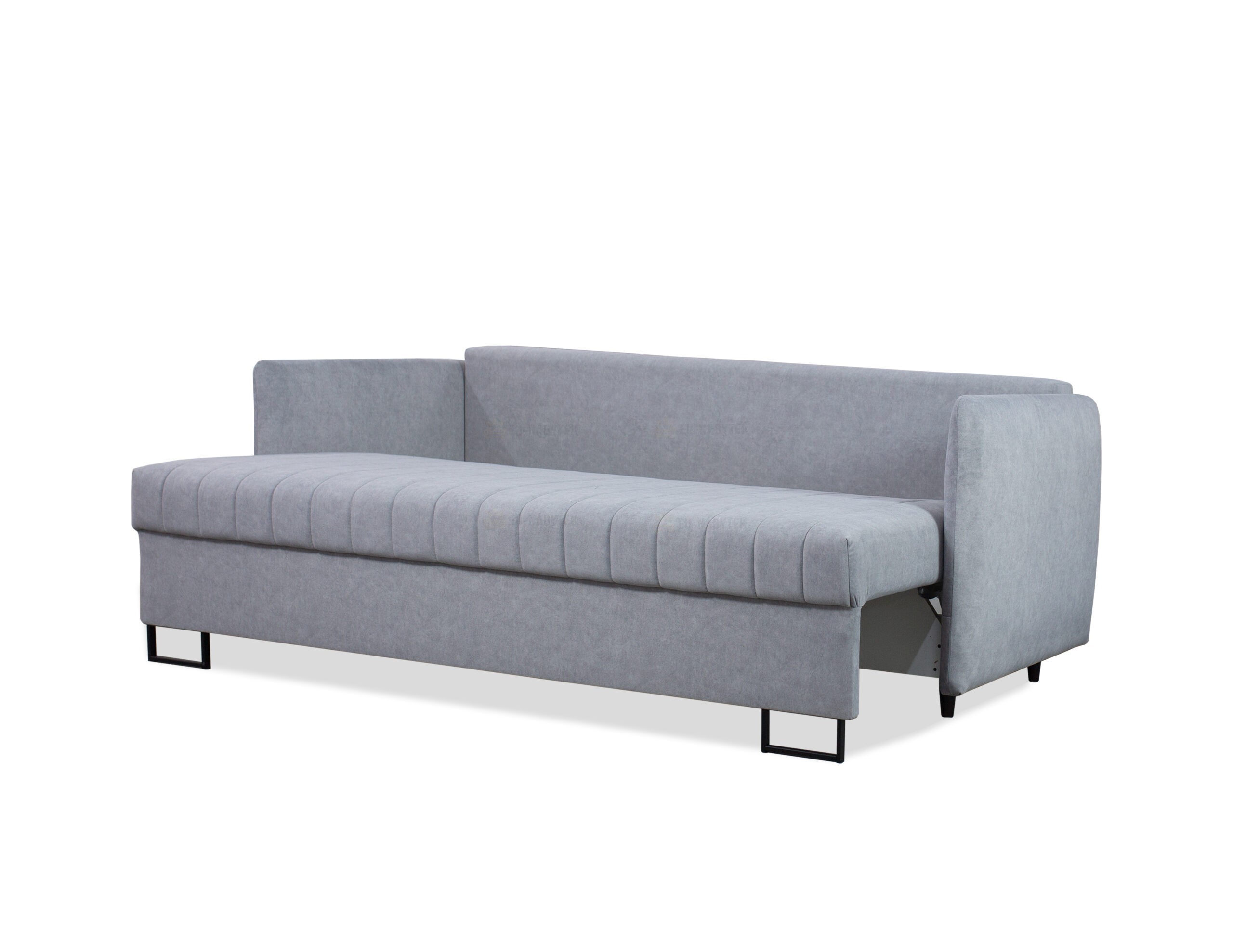 Moderní rozkládací pohovka Ladies je ideální pro ty, kteří ocení komfort a pohodlí. Tkanina vysoké kvality, masivní pevná kostra, bonellové pružiny s kvalitní PUR pěnou zaručují komfortní posezení. Pohovka je vhodná jak do obývacího pokoje tak například i pokoje pro hosty. Samozřejmostí je automatický rozklad pro příležitostné přespání. Spací plocha po rozložení je o rozměru 149x197 cm. Pohovka má také praktický úložný prostor pro uložení potřebných věcí. Doplněna je o moderní černé kovové nožky. Celkové rozměry pohovky jsou 217x102x98cm. Je čalouněná kvalitní látkou Soro 90.