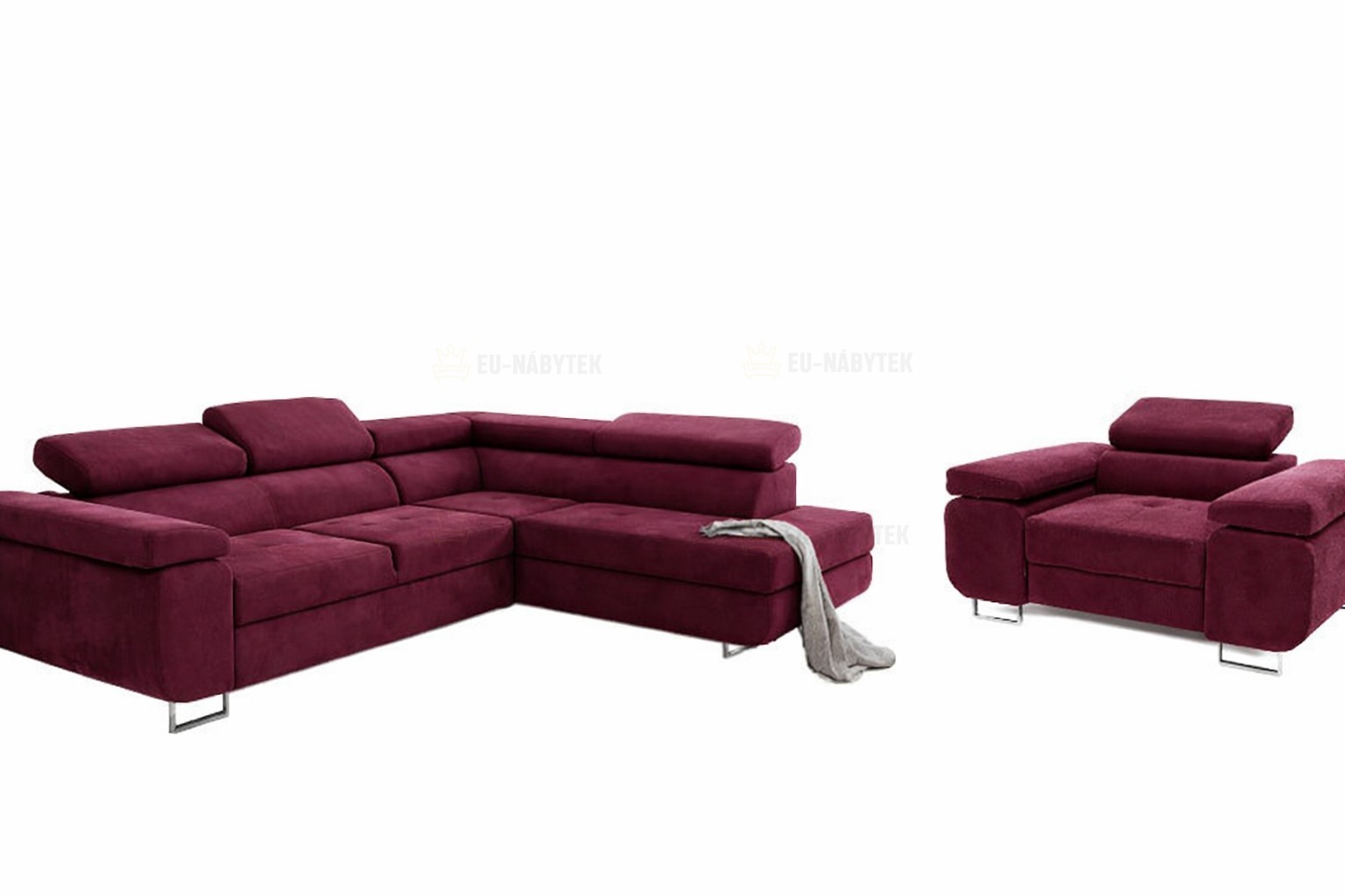 Moderní sedací souprava Tony je ideální pro ty, kteří požadují komfort a vysoké pohodlí. Styl jejího provedení je velice nadčasový a svými liniemi zapadne do každého interiéru. Na sedáky jsou použity pružiny typu Faliste. Velkou výhodou jsou polohovatelné záhlavníky. Díky čalouněným zádům lze sedací soupravu umístit i volně do prostoru. Samozřejmostí je automatický rozklad pro příležitostné spaní o rozměru 125x195cm. Čalouněná je kvalitní látkou Magic Velvet 2202.. Sedačka je dodávána včetně moderního křesla , které je vhodným doplňkem pro relax a odpočinek do každé domácnosti. Zaujme především svým designem, praktickým polohovatelným záhlavníkem a moderními kovovými nožkami v barvě chrom stejně jako u sedačky. Díky kvalitní PUR pěně a pružinám Faliste si dopřejete ten nejpohodlnější odpočinek. Čalouněné je také kvalitní látkou Magic Velvet 2202.