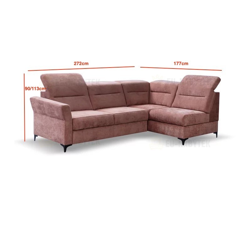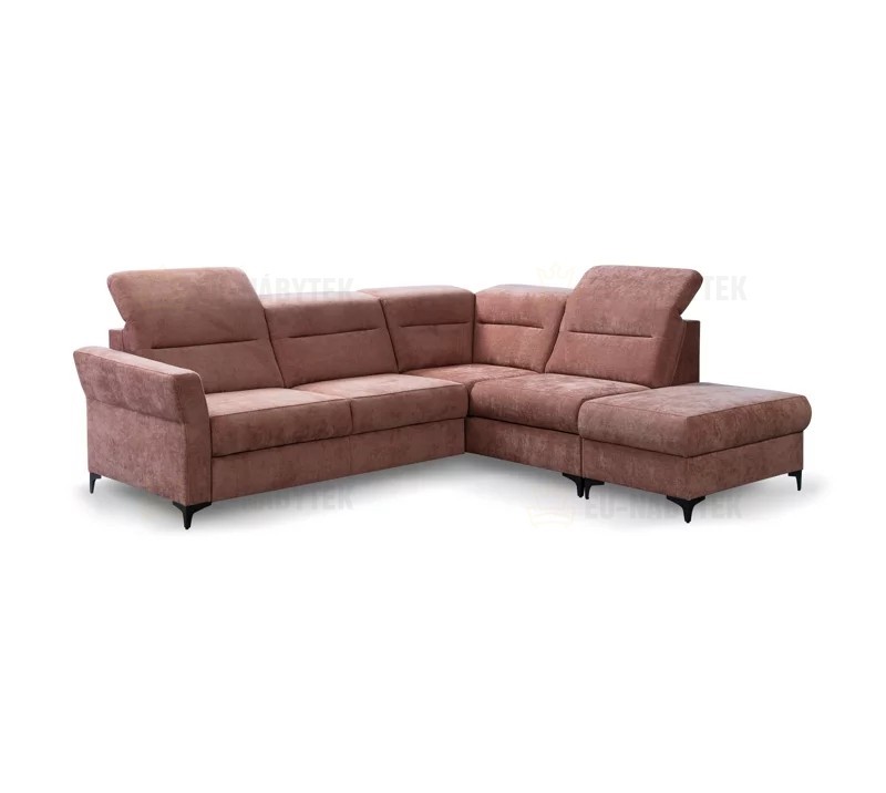 Rohová celočalouněná sedačka Deniro je extravagantní kousek, který bude apelovat na všechny, i ty nejnáročnější zákazníky. Perfektně se hodí do každého interiéru obývacího pokoje. Velkou výhodou jsou praktické polohovatelné záhlavníky, díky kterým si dopřejete ten nejpohodlnější odpočinek. Předností jsou moderní kovové černé nožky, které sedačce dodávají ten správný design. Deniro je rohová sedačka s praktickým úložným prostorem v bočním otomanu a také spací plochou. Díky automatickému rozkladu získáte během pár sekund plochu o rozměru 123x202cm. Pohodlné sezení zaručují pružiny Faliste spolu s kvalitní HR pěnou. Celkové rozměry sedačky jsou 272x177x90/113cm. Sedačka je dodávána včetně taburetu o rozměru 66x101x49cm. Pohodlné sezení zaručují pružiny Faliste spolu s kvalitní HR pěnou. Čalounění je kvalitní látka Rebel 8.
