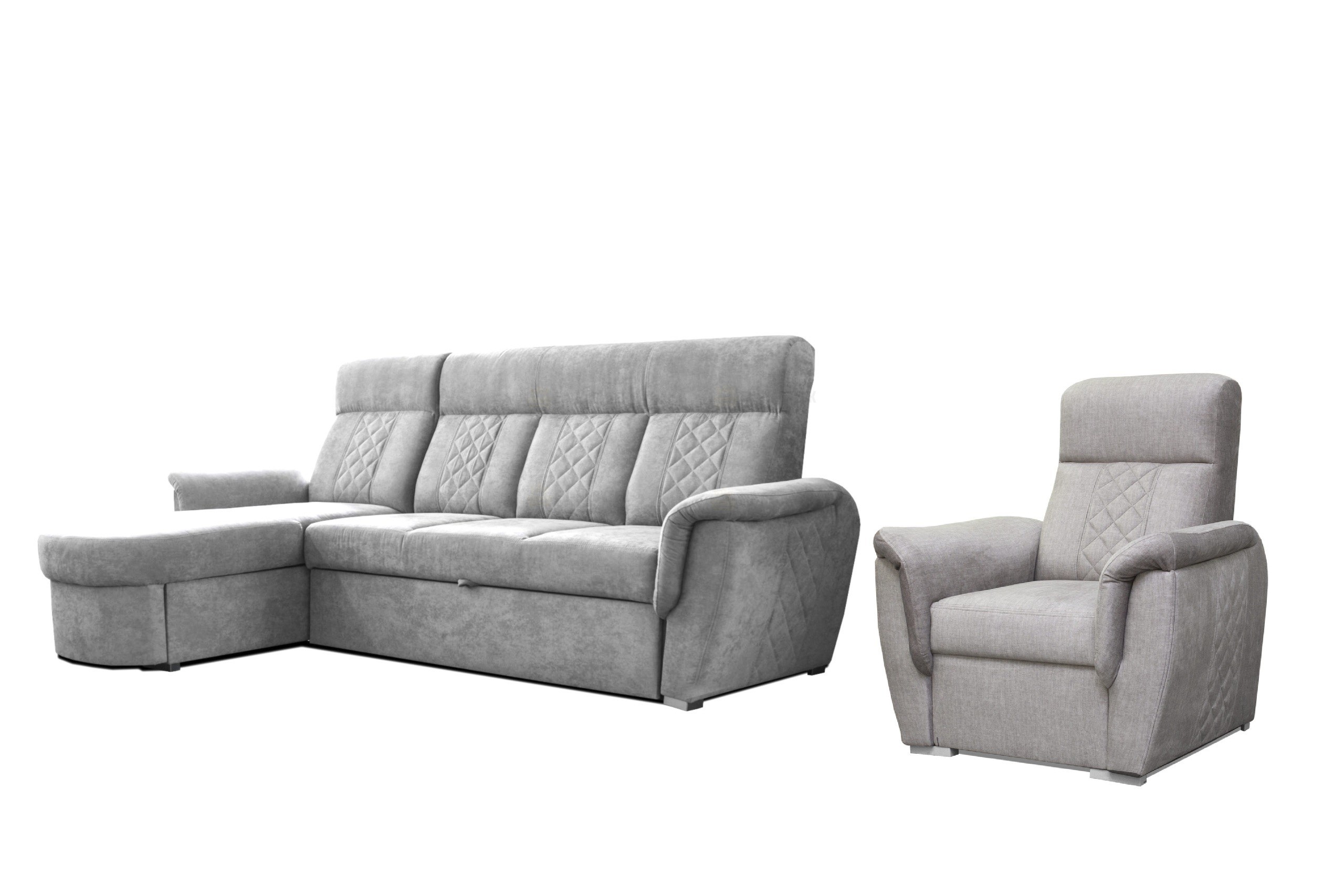 Sedací souprava Bonton je ideální pro ty, kteří ocení komfort a pohodlí. Tkanina vysoké kvality, masivní pevná kostra, kvalitní pružiny spolu s PUR pěnou zaručují komfortní posezení. Disponuje automatickým rozkladem pro příležitostné přespání a úložným prostorem pro uložení lůžkovin. Ten se nachází v otomanu. Velkou předností je kvalitní prošití, které dodává sedací soupravě luxusní vzhled. Celkové rozměry sedačky jsou 265x158x110cm. Výška sezení je 48cm. Díky výšce opěrné části 62cm vám sedačka umožňuje pohodlné opření a kvalitní odpočinek. Sedačka je dodávána včetně křesla ve stejné látce, díky kterému získáte další prostor pro pohodlné sezení. Je čalouněná kvalitní látkou Terra 88.