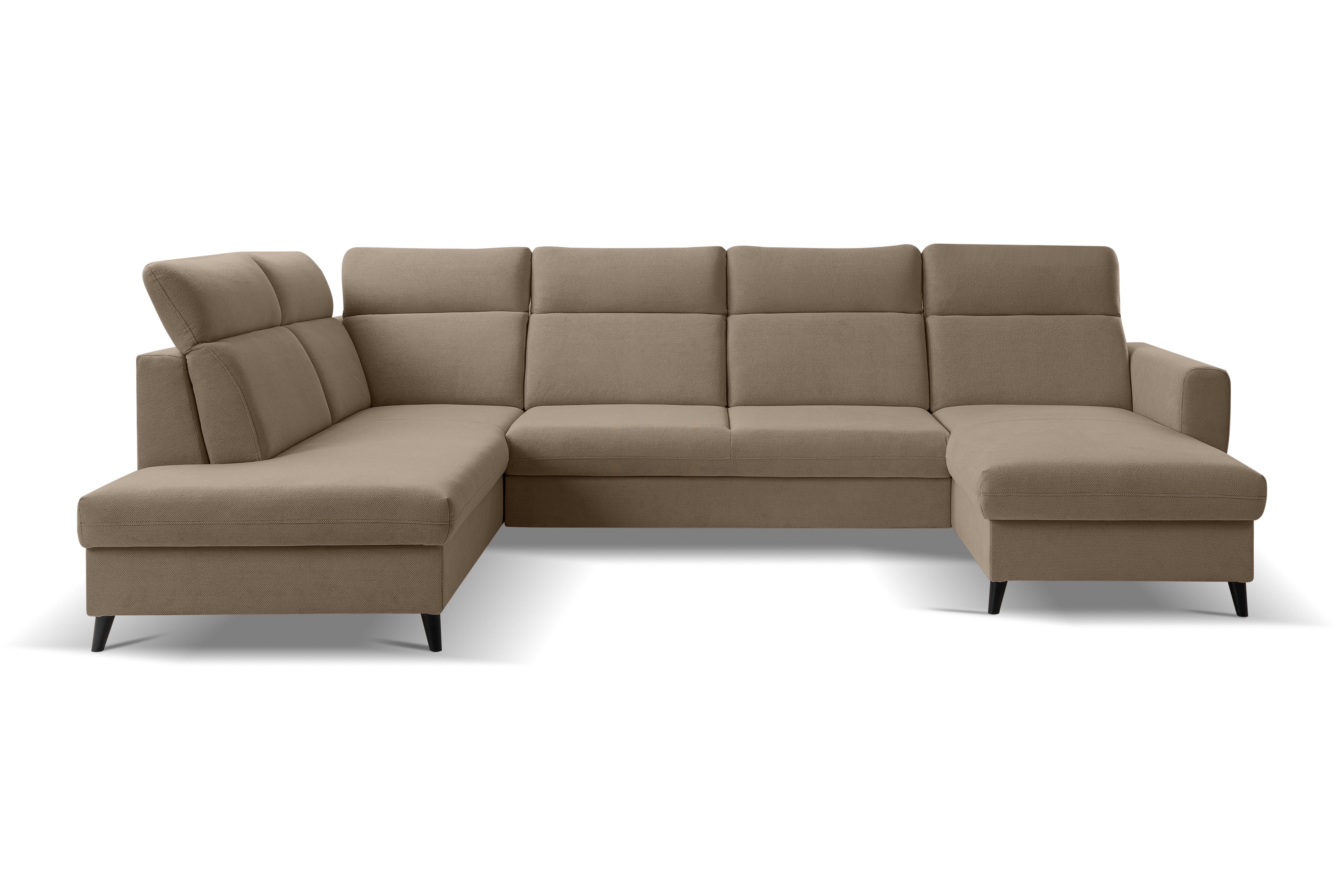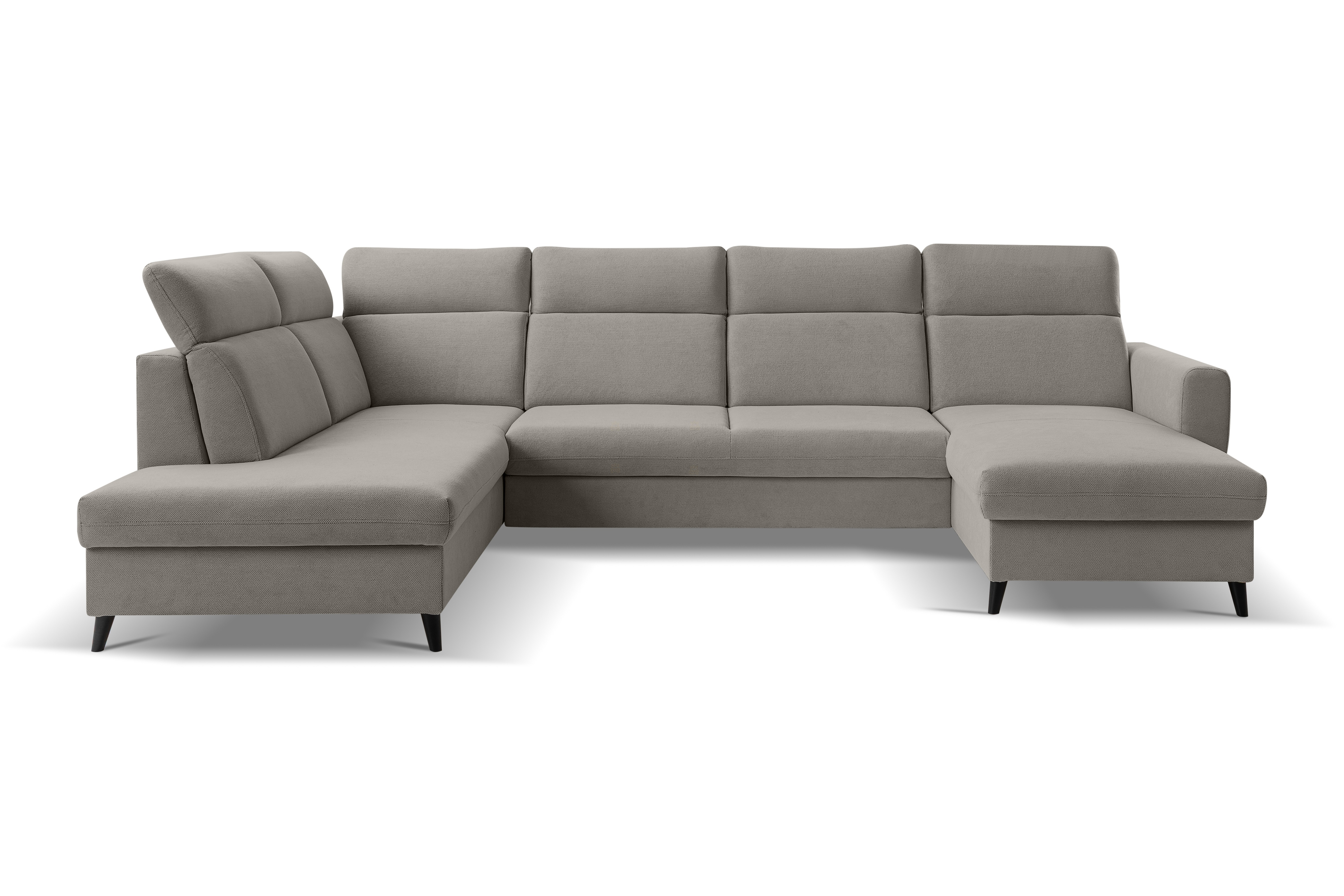 Moderní sedací souprava Torrino je ideální pro ty, kteří požadují komfort a vysoké pohodlí. Styl jejího provedení je velice nadčasový a svými liniemi zapadne do každého interiéru. Nadchne především svými designovými černými kovovými nožkami, které dodávají sedačce luxusní vzhled. Na sedáky jsou použity kvalitní pružiny typu Faliste spolu s vysokoelastickou PUR pěnou T30. Velkou výhodou jsou polohovatelné záhlavníky, díky kterým si dopřejete ten nejpohodlnější odpočinek. Samozřejmostí je rozklad, díky kterému získáte plochu pro příležitostné spaní o rozměru 285x125cm. Praktické úložné prostory se nachází v bočních otomanech. Celkové rozměry sedačky jsou 340x202/175x105cm. Celočalouněná - vhodná do prostoru. Čalouněná je kvalitní látkou Curio 83. Na hlavním obrázku je pravý roh!