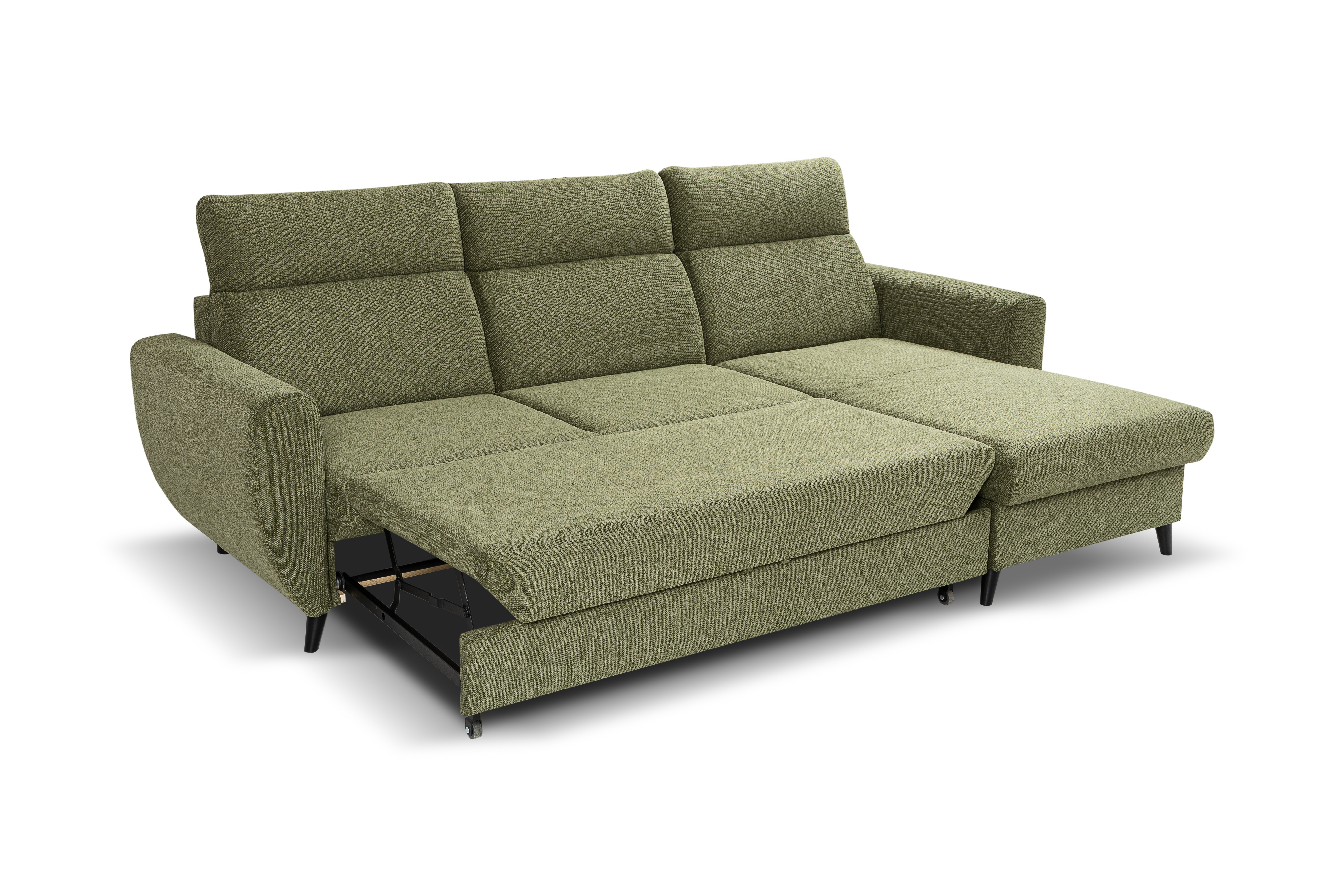 Moderní sedací souprava Torrino je ideální pro ty, kteří požadují komfort a vysoké pohodlí. Styl jejího provedení je velice nadčasový a svými liniemi zapadne do každého interiéru. Nadchne především svými designovými černými nožkami, které dodávají sedačce luxusní vzhled. Na sedáky jsou použity kvalitní pružiny typu Faliste spolu s vysokoelastickou PUR pěnou T30. Velkou výhodou jsou polohovatelné záhlavníky, díky kterým si dopřejete ten nejpohodlnější odpočinek. Samozřejmostí je rozklad, díky kterému získáte plochu pro příležitostné spaní o rozměru 224x125cm. Praktický úložný prostor se nachází v bočním otomanu. Celkové rozměry sedačky jsou 258x165x105cm. Celočalouněná - vhodná do prostoru. Čalouněná je kvalitní látkou Aragon 03.