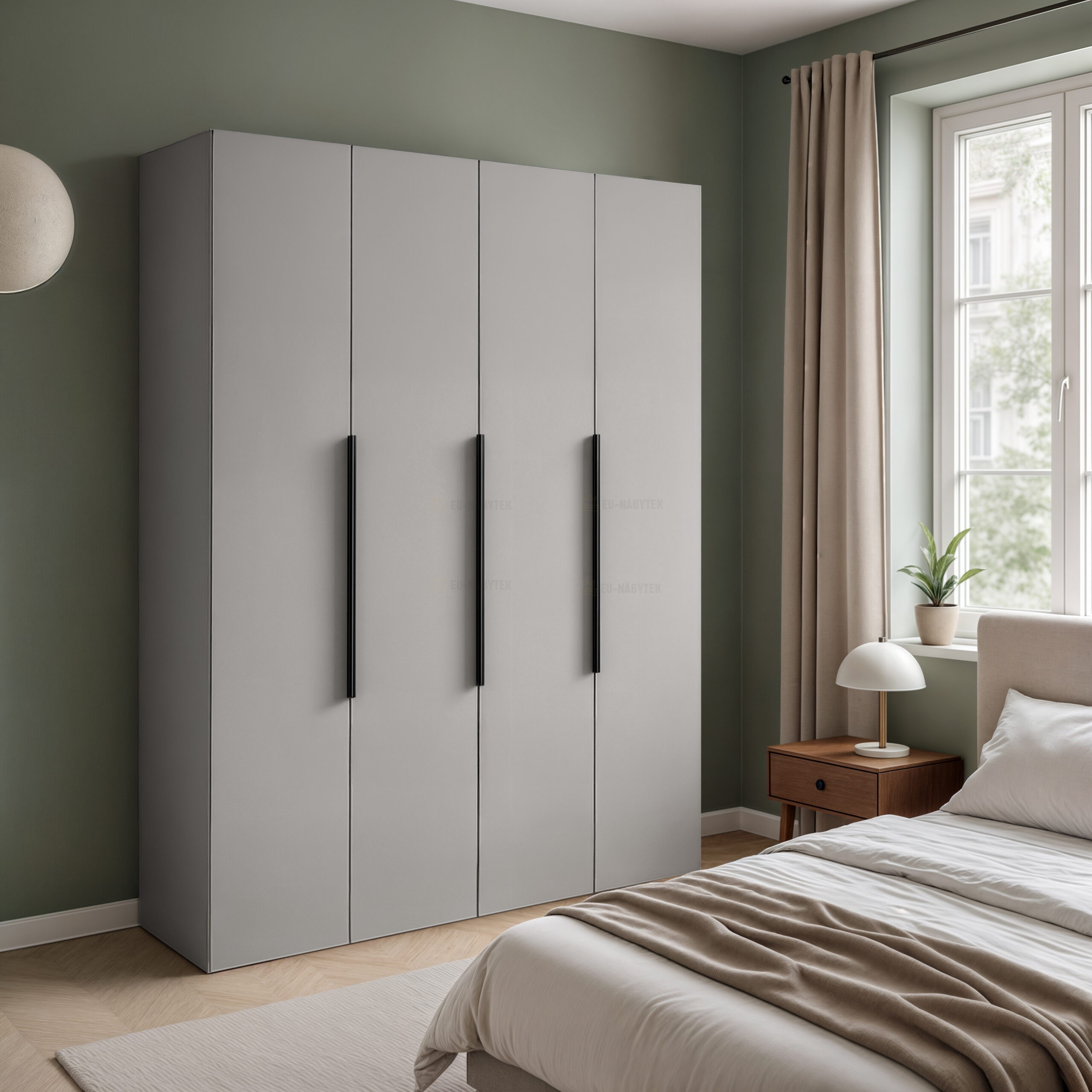 Moderní minimalistická šatní skříň, která nadchne především milovníky čistého a jednoduchého designu. Rozměry jsou 160x216x60cm. Vyrobena je z těch nejkvalitnějších materiálů, křídlové dveře. Zajímavým prvkem jsou černé úchytky. Skříň je ideálním řešením pro moderní ložnice či šatny. Je nejen designovým kouskem, ale také praktickým pomocníkem pro každodenní organizaci vašeho oblečení a doplňků. Na bočních stránách naleznete praktické police, uprostřed pak šatní tyč a další dvě police navíc. V barevném provedení béžová. V nabídce ji naleznete v dalších barvách i v provedení s praktickým zrcadlem.