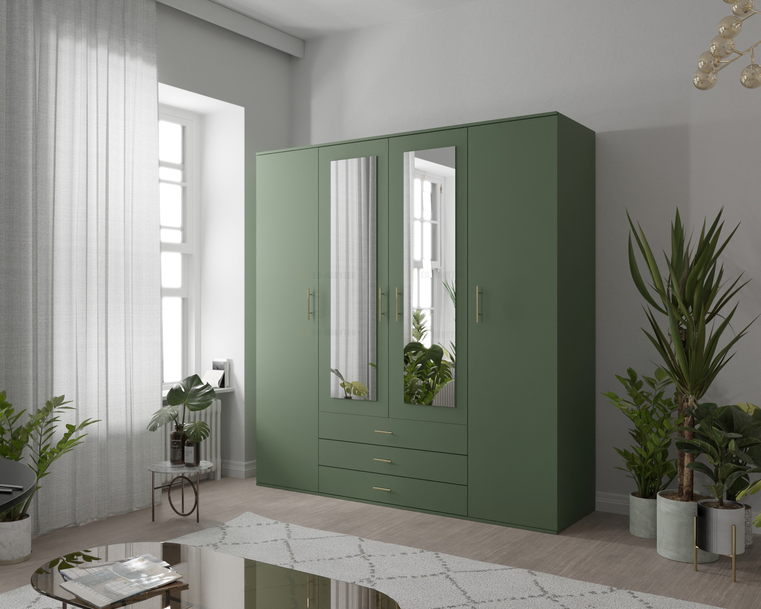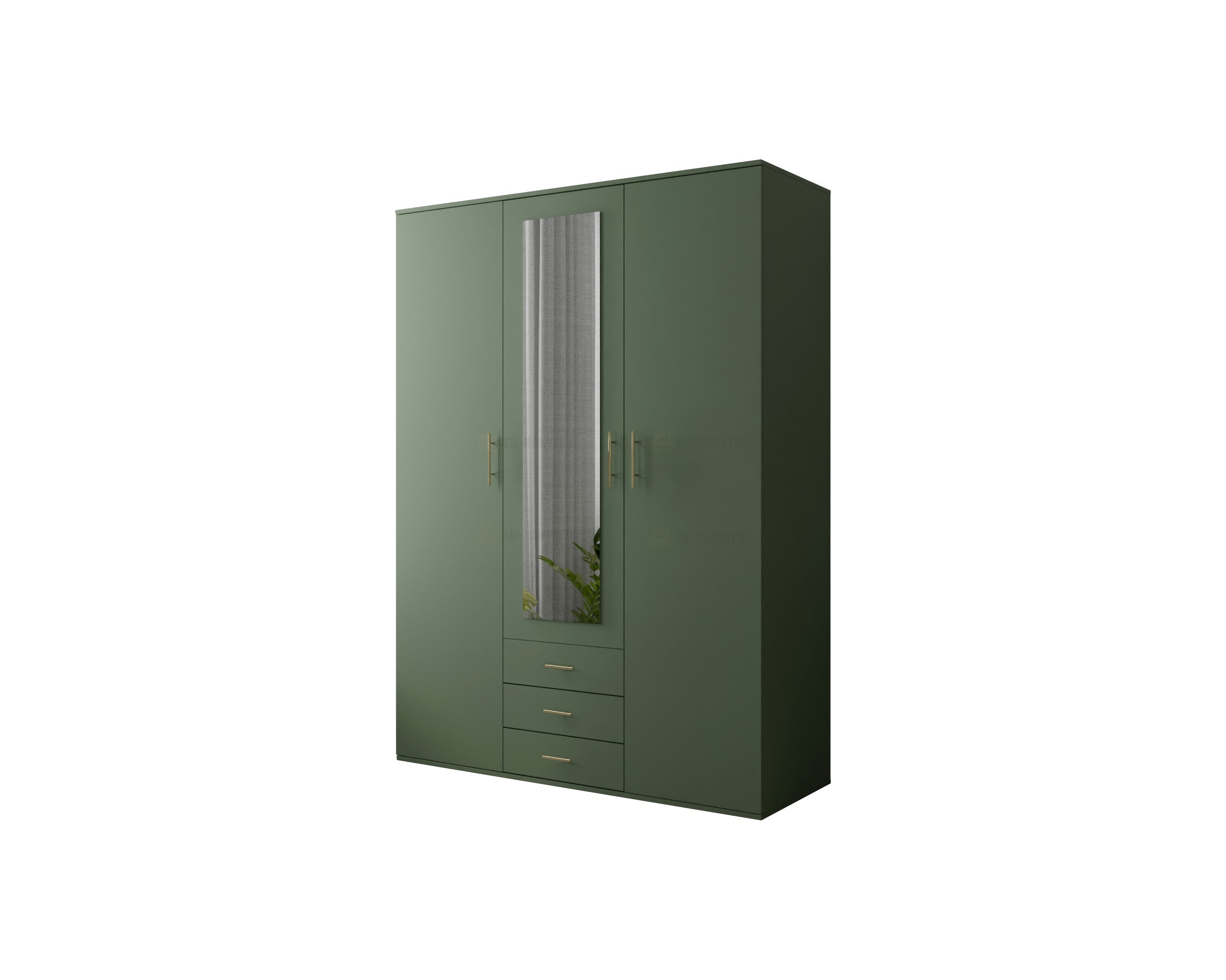 Praktická a stylová šatní skříň Olivio 150 je ideální volbou do moderních interiérů. Elegantní zelené provedení doplňuje zrcadlový panel na středních dveřích, který opticky zvětšuje prostor a zároveň plní praktickou funkci při každodenním oblékání. Uvnitř skříně naleznete promyšlené rozvržení úložného prostoru – police, šatní tyč a tři zásuvky umožňují přehledné uložení oblečení, doplňků i obuvi. Skříň je perfektní volbou do ložnic, předsíní i studentských pokojů. Kombinuje moderní design s maximální funkčností. Celkové rozměry jsou 150x210x58cm. V nabídce ji naleznete i v šíři 200cm.